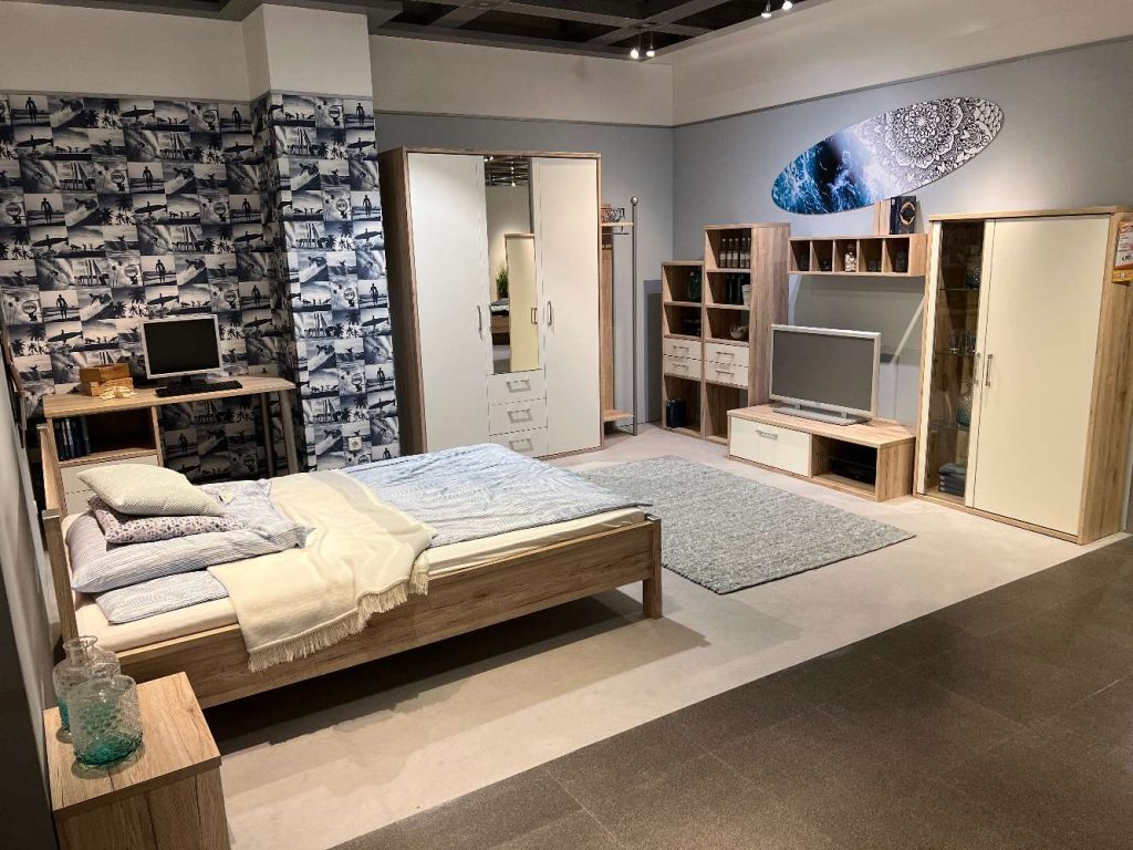 BemerkungTauchen Sie ein in die Welt moderner und stilvoller Jugendzimmereinrichtungen mit diesem eindrucksvollen Komplett-Set in der ansprechenden Farbgebung aus Eiche San Remo Nachbildung und Weiß. Diese Kombination verleiht dem Raum eine warme und zugleich zeitgemäße Atmosphäre, die sowohl gemütlich als auch dynamisch wirkt. Die Ausstellungware besticht durch ihre Funktionalität und Ästhetik, perfekt abgestimmt auf die Bedürfnisse eines jungen Menschen. Das Set bietet jeglichen Komfort einer durchdachten Jugendeinrichtung, lässt jedoch Raum für persönliche Gestaltung, da es ohne Lattenrost und Matratze geliefert wird. Dies ermöglicht eine individuelle Anpassung je nach Komfort- und Stilpräferenz. Schaffen Sie mit diesem Jugendzimmer Komplett-Set einen Ort zum Wohlfühlen, der nicht nur optisch überzeugt, sondern auch praktischen Stauraum und kreative Freiräume bietet. Ideal für junge Menschen, die Wert auf moderne Einrichtung mit einem Hauch von Natürlichkeit legen.