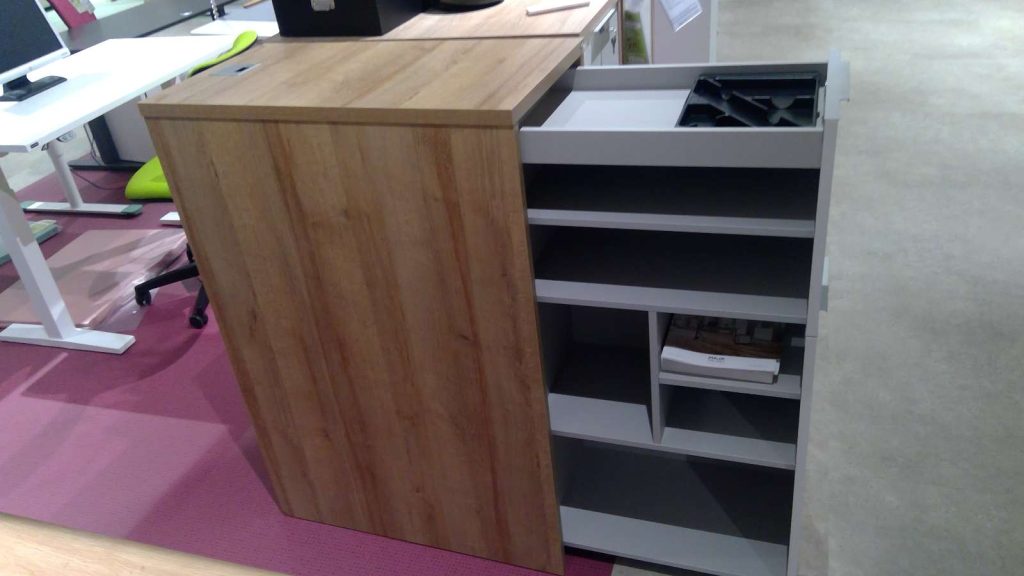 - abschließbarer Teleskopauszug - inkl. Utensilieneinsatz - Kabeldurchlass in der Abdeckplatte - hartbodentaugliche Rollen