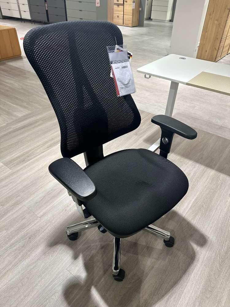 BemerkungDer Ortho Sedis 75 von TOPSTAR ist ein erstklassiger Drehstuhl, der speziell darauf ausgelegt ist, den Komfort und die Flexibilität am Arbeitsplatz zu maximieren. Mit seiner eleganten schwarzen Mesh-Rückenlehne und dem stabilen Fußkreuz aus Stahl kombiniert dieser Stuhl modernes Design mit Funktionalität. Die höhenverstellbaren Armlehnen ermöglichen individuelle Anpassungen, die den Benutzer in jeder Position unterstützen. Dank der stufenlosen Sitzhöhenverstellung mit Toplift kann der Stuhl bequem an unterschiedliche Tischhöhen angepasst werden, was für eine ergonomische Sitzposition sorgt. Die taillierte Rückenlehne und die höhenverstellbare Rückenlehne bieten zusätzlichen Komfort und fördern eine gesunde Haltung während langer Arbeitsstunden. Die Permanentkontakt-Mechanik sorgt dafür, dass Rücken und Sitzfläche stets in optimalem Kontakt zueinander stehen, um den Körper optimal zu unterstützen. Mit kompakten Maßen von 50 x 39-51 x 46 cm ist der Ortho Sedis 75 ideal für verschiedene Arbeitsplatzgrößen, ohne auf Komfort oder Stil verzichten zu müssen.
