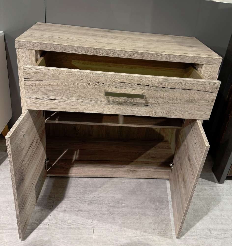 BemerkungDie Kommode Portland von FORTE verleiht Ihrem Raum einen Hauch von schlichter Eleganz in der ansprechenden Farbe Sandeiche. Als Ausstellungsstück zeichnet sich dieses Möbelstück durch seine kompakte und zugleich effektive Maße aus, mit einer Breite von 96 cm, einer Höhe von 83 cm und einer Tiefe von 41 cm, die perfekt in verschiedene Wohnbereiche integriert werden können. Die Portland Kommode bietet mit ihren zwei Türen und einem praktischen Schubkasten vielseitige Aufbewahrungsmöglichkeiten, um Ihre Habseligkeiten stilvoll zu organisieren.