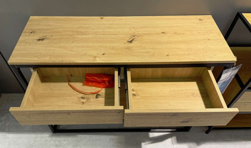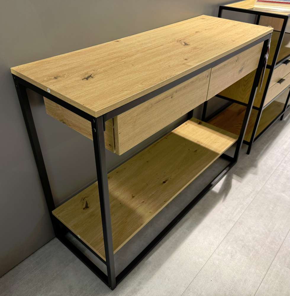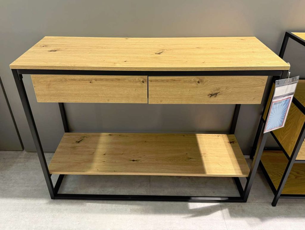 BemerkungDas Modell "Bergen" des Herstellers - HAKU - präsentiert sich als stilvolle Konsole, die sowohl durch ihre Funktionalität als auch durch ihr ansprechendes Design überzeugt. Mit einer Breite von 100 cm, einer Höhe von 75 cm und einer Tiefe von 35 cm bietet sie die ideale Größe für verschiedene Wohnbereiche. Die Ablagefläche in Eiche Nachbildung verleiht der Konsole einen natürlichen und zeitlosen Charme, während das schwarze Metallgestell für einen modernen Akzent sorgt. Praktische Akzente setzt Bergen mit zwei geräumigen Schubkästen, die viel Platz für alltägliche Utensilien bieten. Diese Konsole ist als Ausstellungsstück erhältlich, was ein weiteres Indiz für ihre Qualität und Attraktivität ist. Bergen vereint geschickt Form und Funktion und ist somit die perfekte Wahl für stilbewusste Einrichtungsliebhaber.
