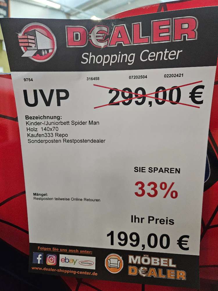 Kinder/Juniorbett Spiderman 140x70cm statt 299€