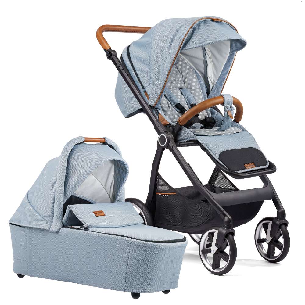 Kinderwagen Indy M2, Swing schwarz, hellblau/ Punkte.