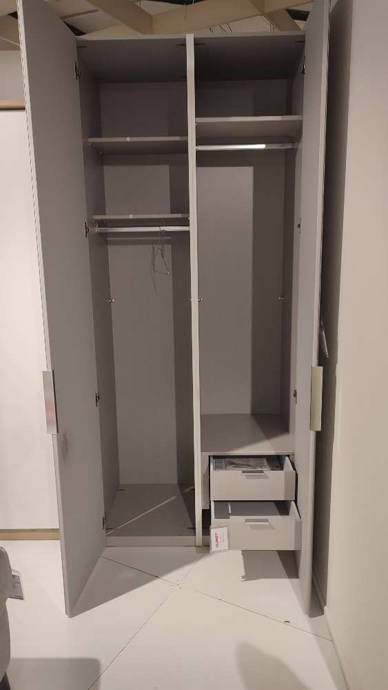 BemerkungDer Kleiderschrank Escalo vereint modernes Design mit stilvoller Eleganz. Der strahlende Korpus in Polarweiß trifft auf eine edle Front aus Siedengrauglas und verleiht jedem Raum eine ruhige, hochwertige Atmosphäre.