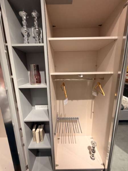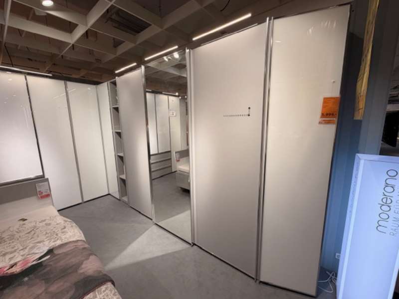 Bemerkung Der Schwebetürenschrank "System One" ist eine elegante und funktionale Ergänzung für jedes moderne Schlafzimmer. Als Ausstellungsstück in makellosem Zustand präsentiert, vereint er zeitgemäßes Design mit praktischer Aufbewahrungslösung. Die klaren Linien und das schlichte, doch stilvolle Äußere passen sich nahtlos in unterschiedliche Raumkonzepte ein, während die Schiebetüren einen sanften Mechanismus bieten, der sowohl Raum spart als auch einen unmittelbaren Zugang zu den verstauten Gegenständen ermöglicht. Der Schrank bietet großzügigen Stauraum, ideal um Kleidung, Schuhe oder andere persönliche Gegenstände ordentlich zu organisieren. Die hochwertige Verarbeitung wird durch robuste Materialien gewährleistet, was dem Möbelstück eine lange Lebensdauer verleiht. Der "System One" Schwebetürenschrank ist die ideale Wahl für alle, die Funktionalität und Stil ohne Kompromisse vereinen möchten.