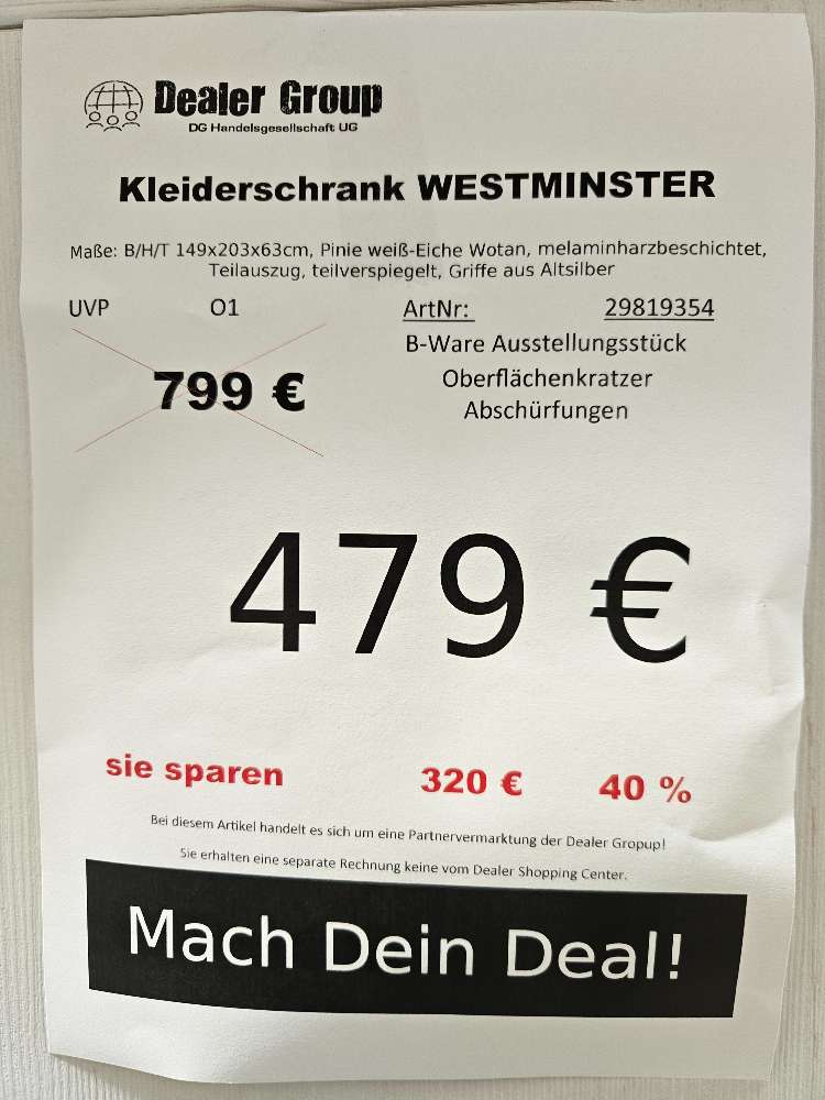 Kleiderschrank Westminster Pinie Weiß statt 799€