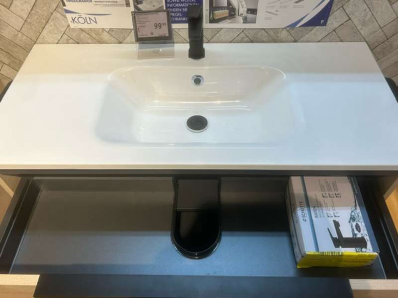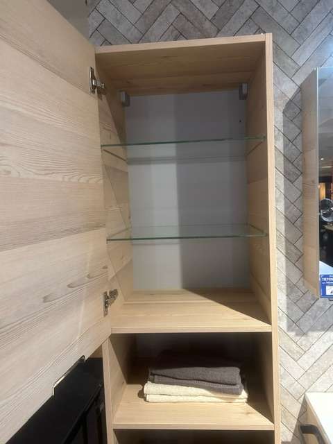 Bemerkung komplett Bad-Set von Pelipal Farbe: Polar Pinie inkl. Beleuchtung inkl. Waschbecken inkl. 2x Handtuchhalter inkl. Wäscheauszug im Hochschrank mit Soft-Close-System Maße (BxHxT): Waschtischkombi: 11x50x46 cm Spiegelschrank: 100x70,3x17 cm Hochschrank: 45x168x43 cm ohne Armatur Ausstellungsstück, kann leichte Kratzer aufweisen aber sonst sind keine Mängel bekannt