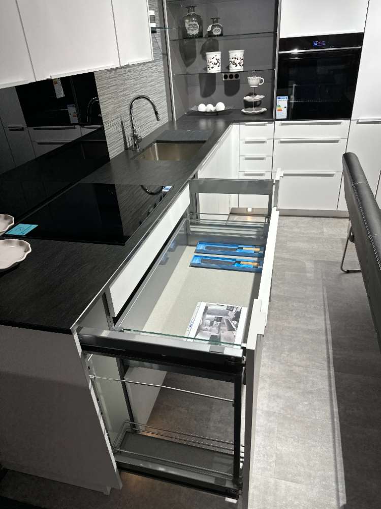 Eine Küche, die durch Kontraste lebt und dennoch harmonisch wirkt – perfekt für alle, die modernes Design mit klarer Ästhetik lieben.