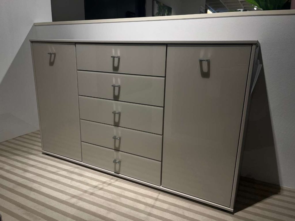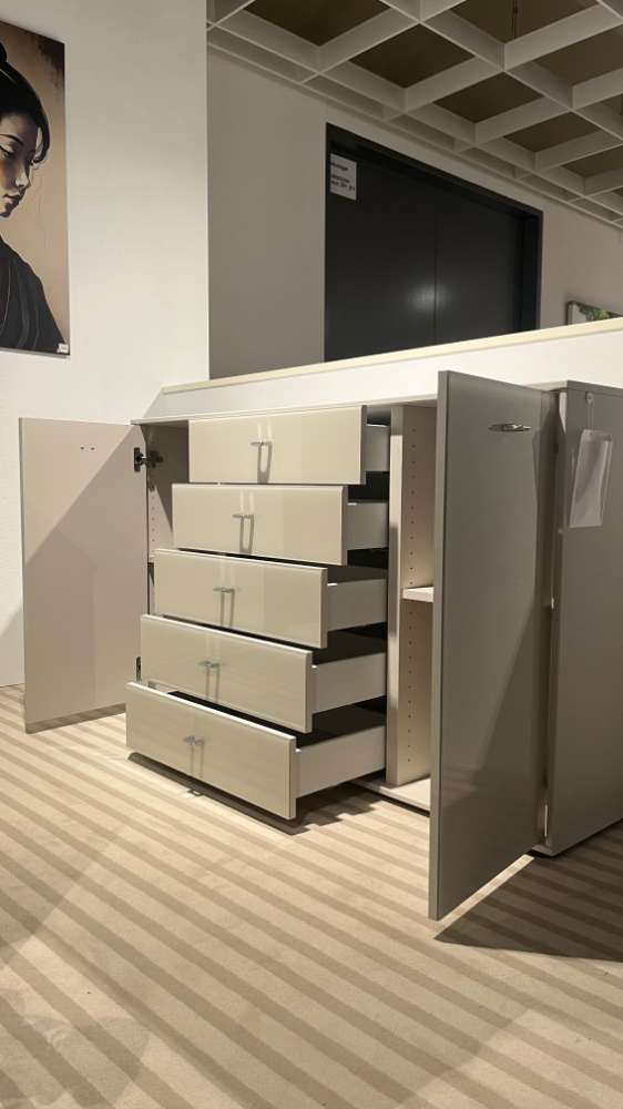Kunststoff Champagner Front: Glas Champagner 5 Auszüge mittig, 2 Türen außen BHT ca. 141 x 86 x 43 cm