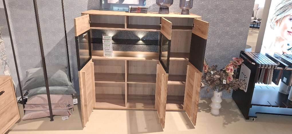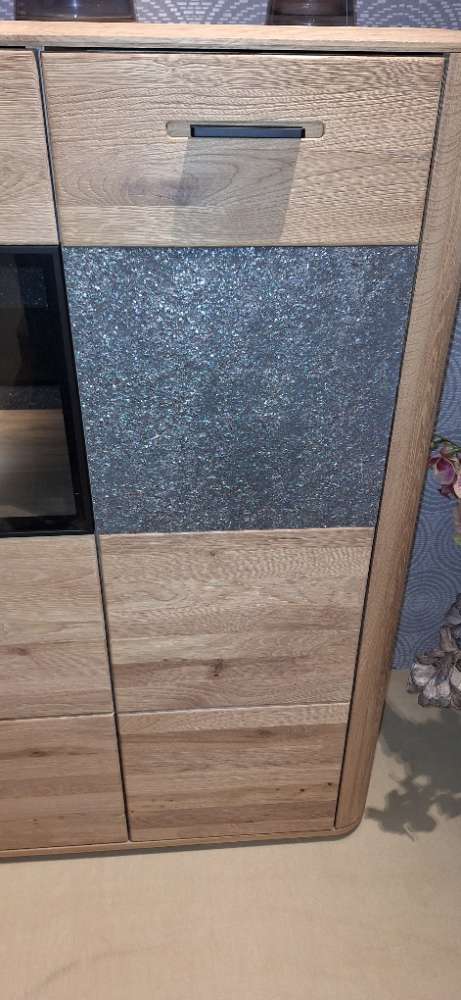Bemerkung Die Inter Living 2029 Kommode besticht durch eine harmonische Kombination aus Stil und Funktionalität. Gefertigt aus massivem Wildeichenholz, strahlt sie eine natürliche Eleganz aus, mit Granitabsetzung. Das robuste Material sorgt nicht nur für Langlebigkeit, sondern verleiht jedem Raum eine warme und einladende Atmosphäre. Als Ausstellungsware verfügt dieses Möbelstück über eine besondere Raffinesse: die integrierte Beleuchtung. Diese Funktion hebt nicht nur sorgfältig ausgewählte Dekorstücke auf der Kommode hervor, sondern erzeugt auch eine sanfte, stimmungsvolle Beleuchtung, die den gesamten Raum erhellt. Mit ihren Maßen von 132x119x39 cm bietet sie ausreichend Stauraum, während sie gleichzeitig als stilvolles Designelement fungiert. Die Inter Living 2029 Kommode ist die perfekte Wahl für Liebhaber von hochwertigem und funktionalem Design. Sie fügt sich nahtlos in verschiedenste Wohnkonzepte ein und überzeugt dabei sowohl mit ihrem ästhetischen als auch praktischen Wert.