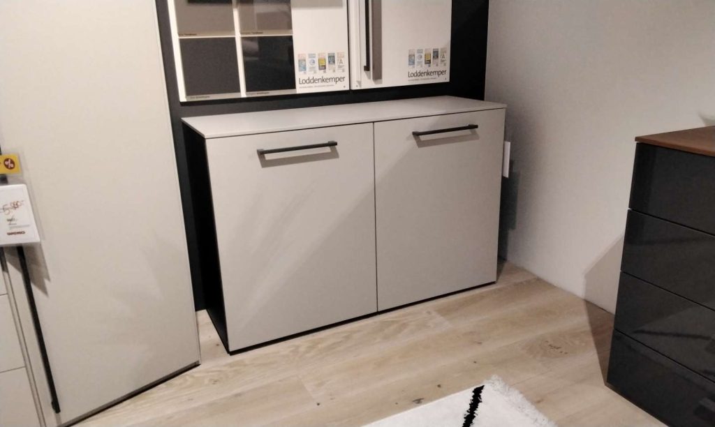 Kommode ca. 120x79x42 cm, Lack Kristallgrau matt, 2 Türen, Grie: Schiefergrau