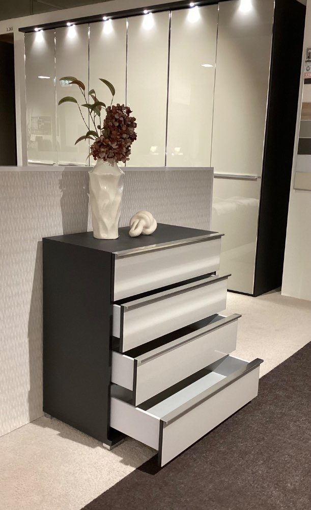 Kommode mit 5 Schüben Korpus Graphit Dekor/ Front Glas Kieselgrau B/H/T ca. 75/82/42 cm