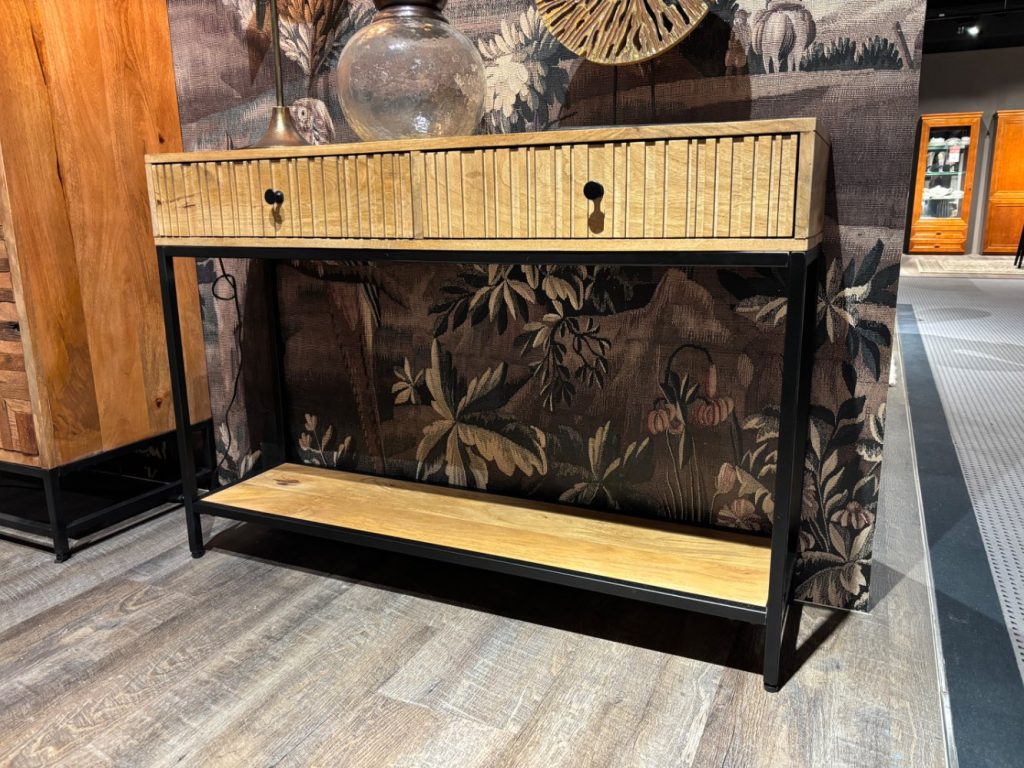 Konsolentisch Nova 2 Schubladen, 1 Ablageboden, Gestell und Griffe aus Metall schwarz,