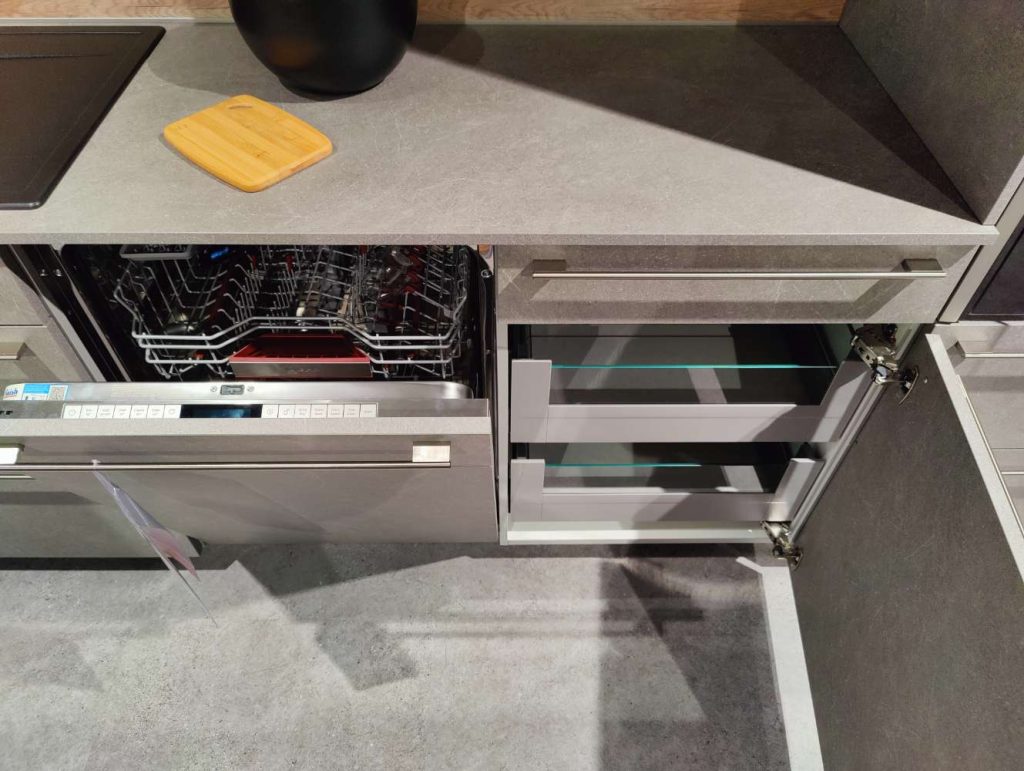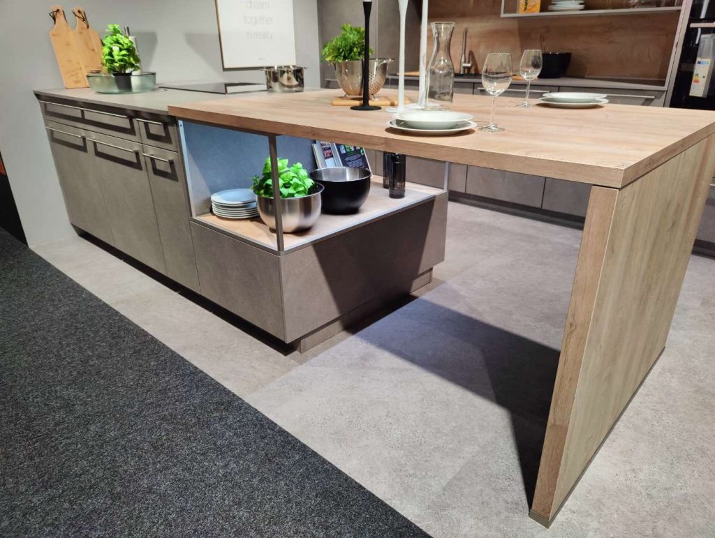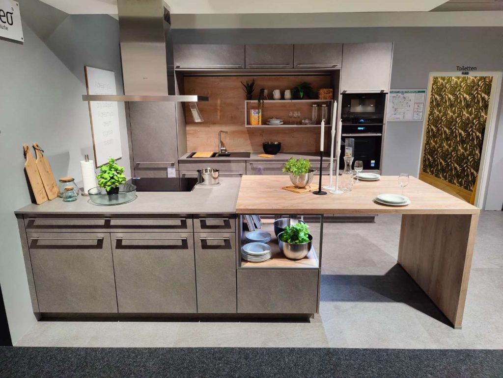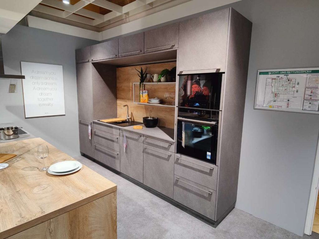 BemerkungEntdecken Sie die exquisite Küchenzeile STONE ART BASALT von NOBILIA, die Eleganz und Funktionalität auf beeindruckende Weise vereint. Diese Ausstellungseinheit erstrahlt in einem edlen Basalt taupegrau, das Ihrer Küche eine moderne und einladende Atmosphäre verleiht. Die Relinggriffe in Edelstahloptik und die passende Arbeitsplatte fügen sich harmonisch in das Design ein, wodurch ein kohärentes und stilvolles Gesamtbild entsteht.