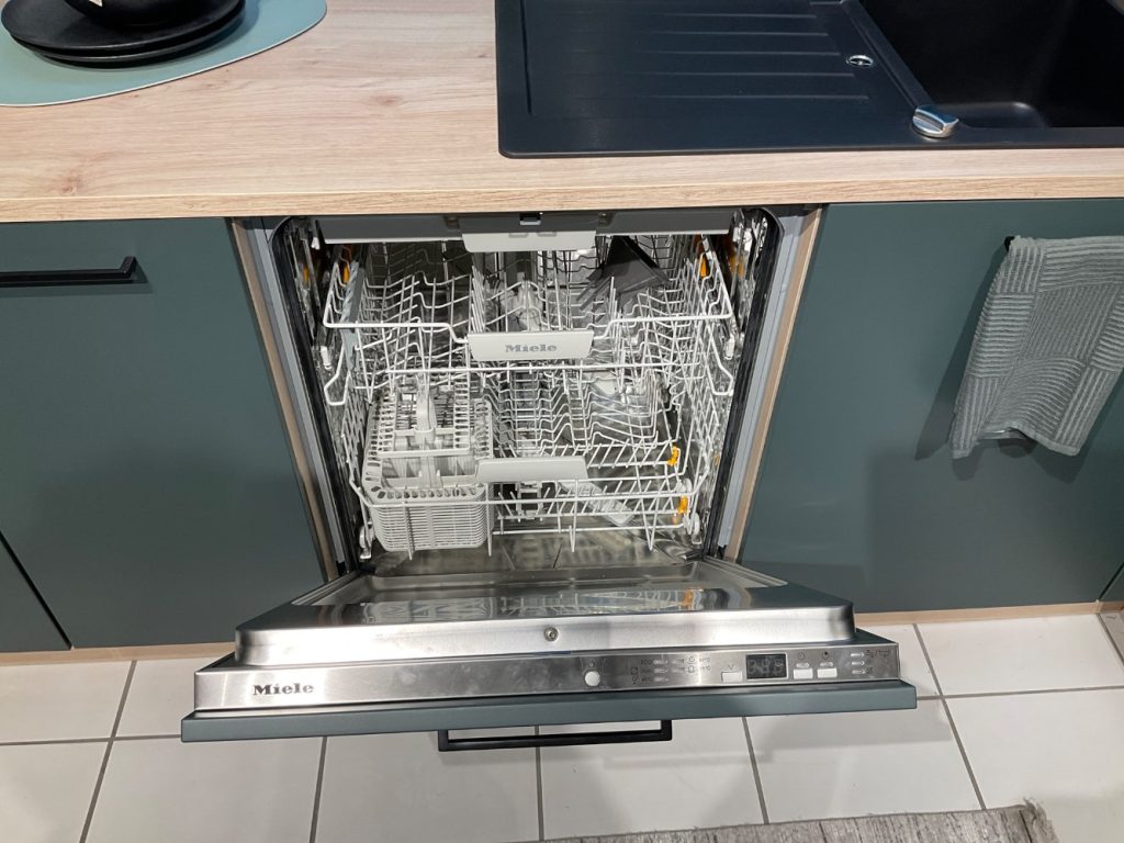 Die Arbeitsflächenhöhe von ca. 92,5 cm bietet optimale Ergonomie und macht die tägliche Küchenarbeit angenehm. Schwarze Griffe und Elektrogeräte fügen sich nahtlos in das puristische Design ein und runden die elegante Optik der Küche ab. Diese Ausstellungsküche wurde mit hoher Präzision und Sorgfalt gefertigt und ist ein perfektes Beispiel für die Qualität, für die NOLTE KÜCHE bekannt ist. Ob für gemeinsames Kochen oder gemütliches Beisammensein — die Soft Lack Küche bietet eine ansprechende Bühne für kulinarische Erlebnisse.