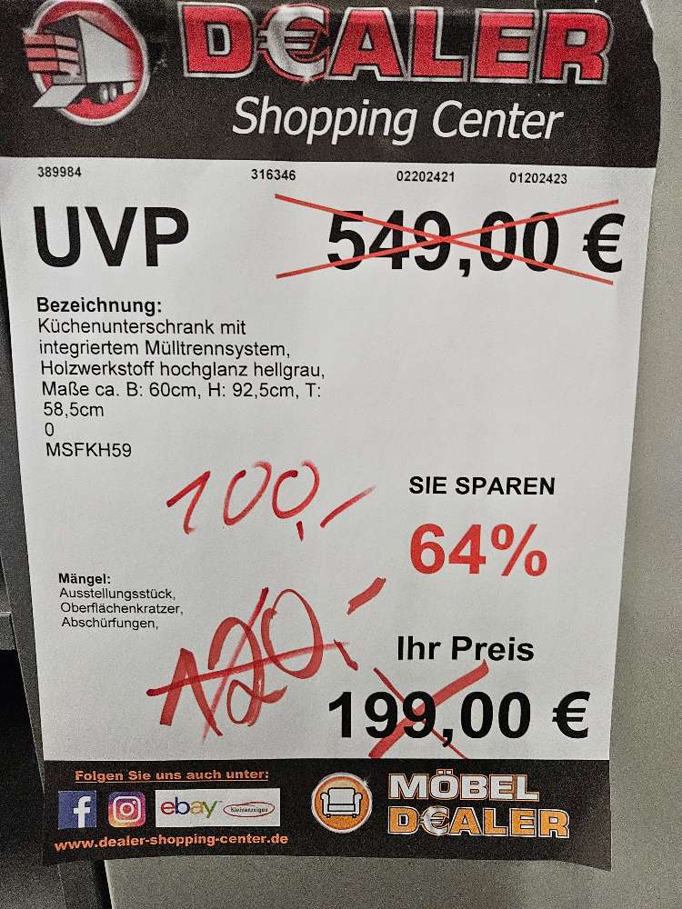 Küche Unterschrank Mülltrennsystem Hellgrau statt 549€