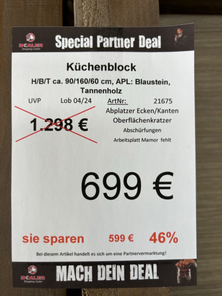 Küchenblock / Küchenschrank mit Blausteim APL statt 1298€