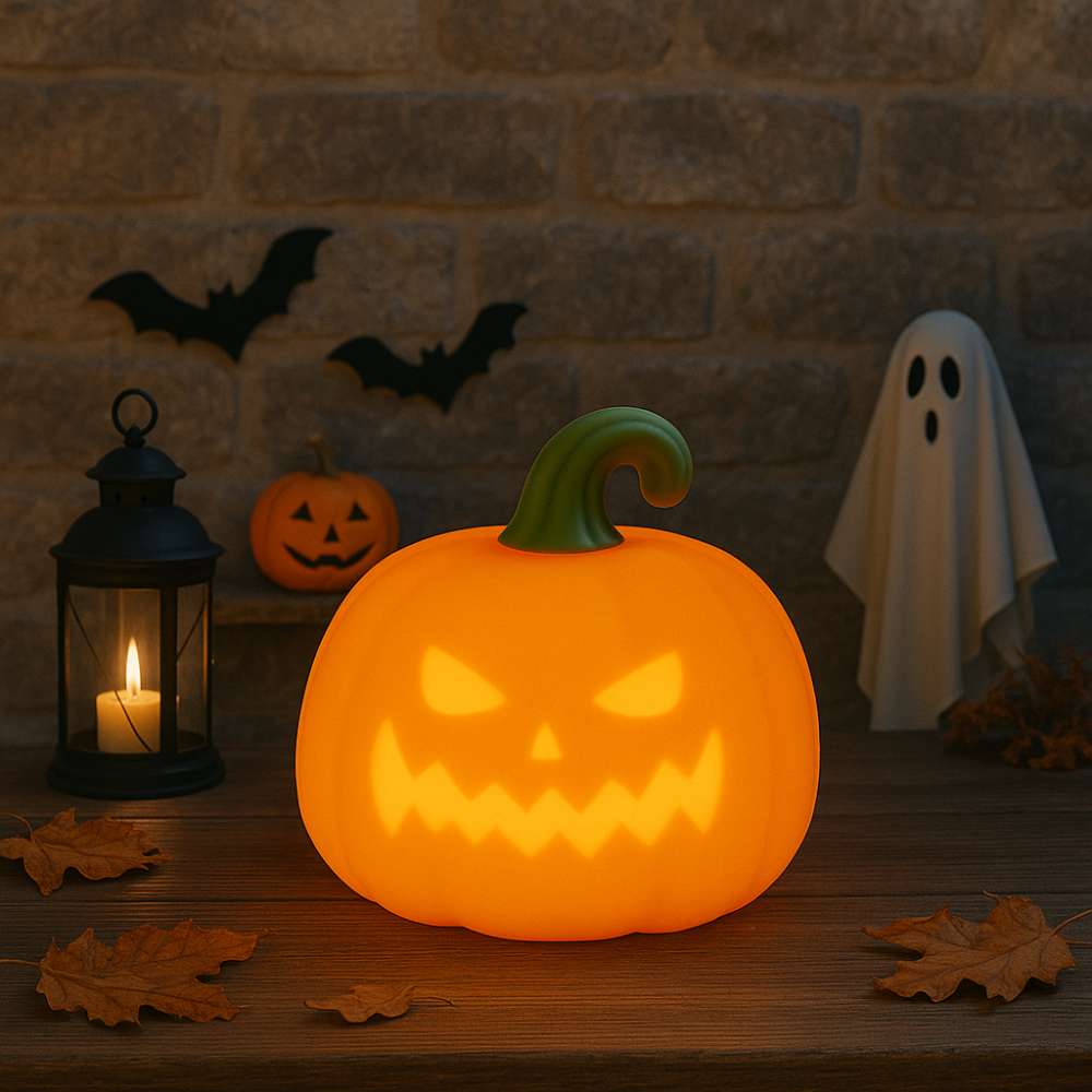 Das LED-Nachtlicht „Richy“ in leuchtendem Orange bringt herbstliche Stimmung und sanftes Licht in dein Zuhause. Ob als Deko auf dem Tisch, stimmungsvolle Beleuchtung im Schlafzimmer oder kuscheliges Nachtlicht – der kleine Kürbis sorgt überall für Gemütlichkeit.