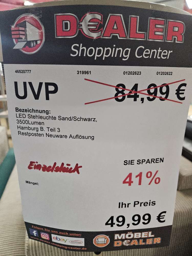 LED Stehleuchte Sand/Schwarz 3500LM statt 84,99€