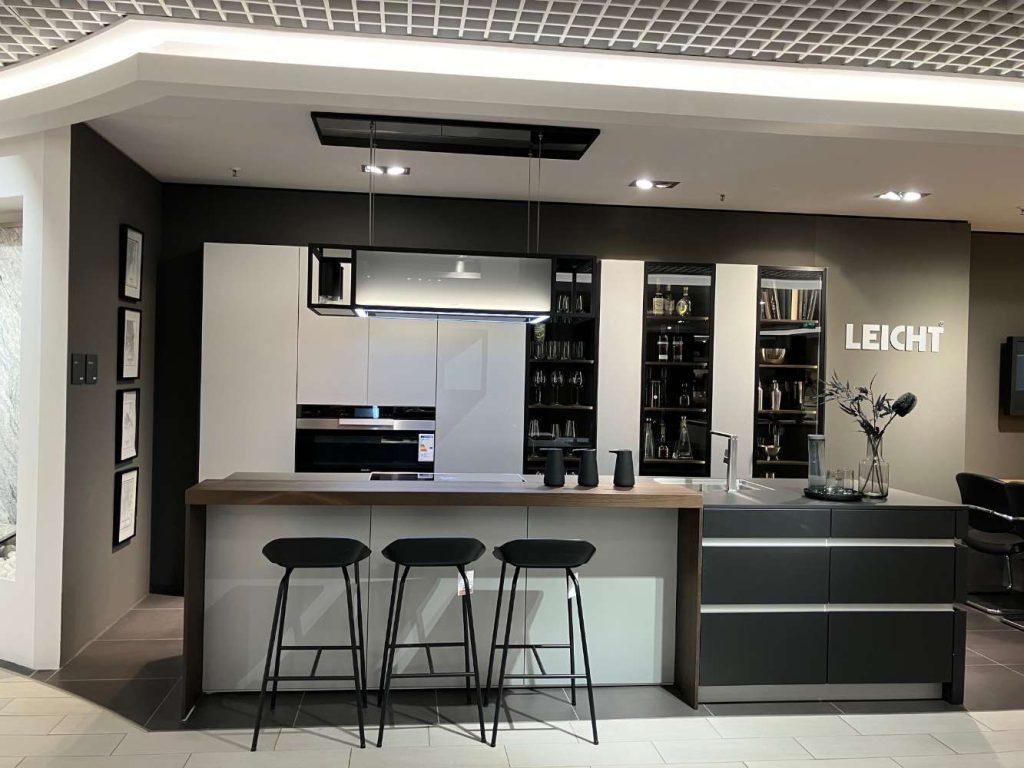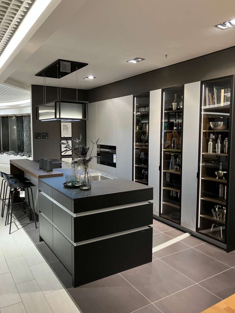 Mit ihrer durchdachten Insel-Küchenform bietet die Aluro AL Classic Avance nicht nur eine Fülle von Arbeitsfläche, sondern auch eine großzügige Fläche für geselliges Beisammensein. Die präzise gefertigten Details und hochwertige Materialien spiegeln sich in jedem Element dieser Küche wider und zeugen von der herausragenden Qualität, die LEICHT KÜCHEN zu bieten hat. Lassen Sie sich vom edlen Design inspirieren und genießen Sie die perfekte Synthese aus Stil und Funktionalität in Ihrer Küche.