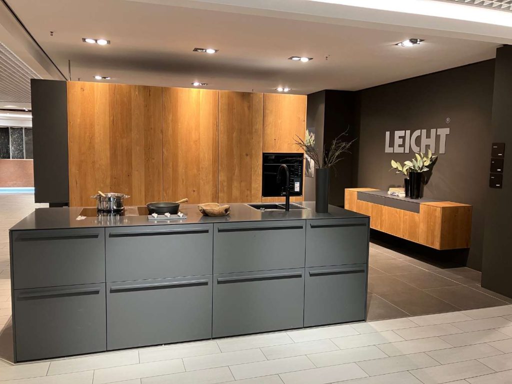 BemerkungDie Madero Küche in der Farbe Carbongrau und Wildeiche Kupfer von LEICHT KÜCHEN ist ein beeindruckendes Beispiel zeitgenössischer Küchengestaltung. Diese Ausstellungsküche besticht durch ihre elegante Kombination aus modernem Design und natürlichem Flair. Die Kücheninsel bildet den Mittelpunkt des Raumes und bietet sowohl funktionale Arbeitsfläche als auch stilvolle Präsentationsmöglichkeiten.