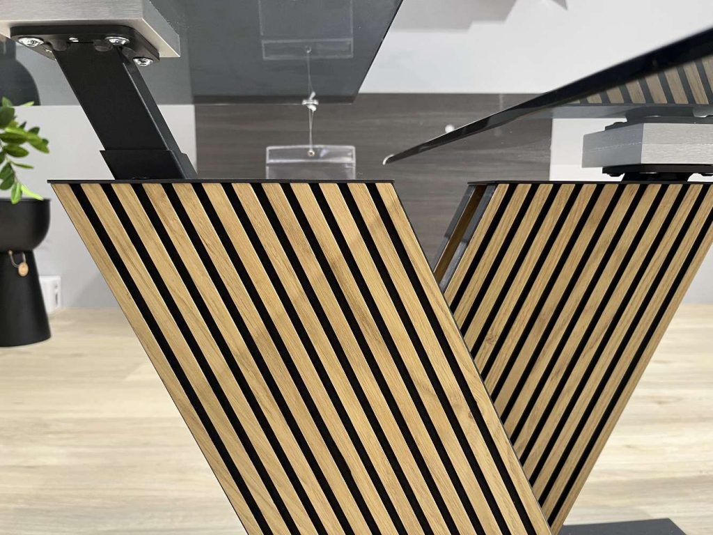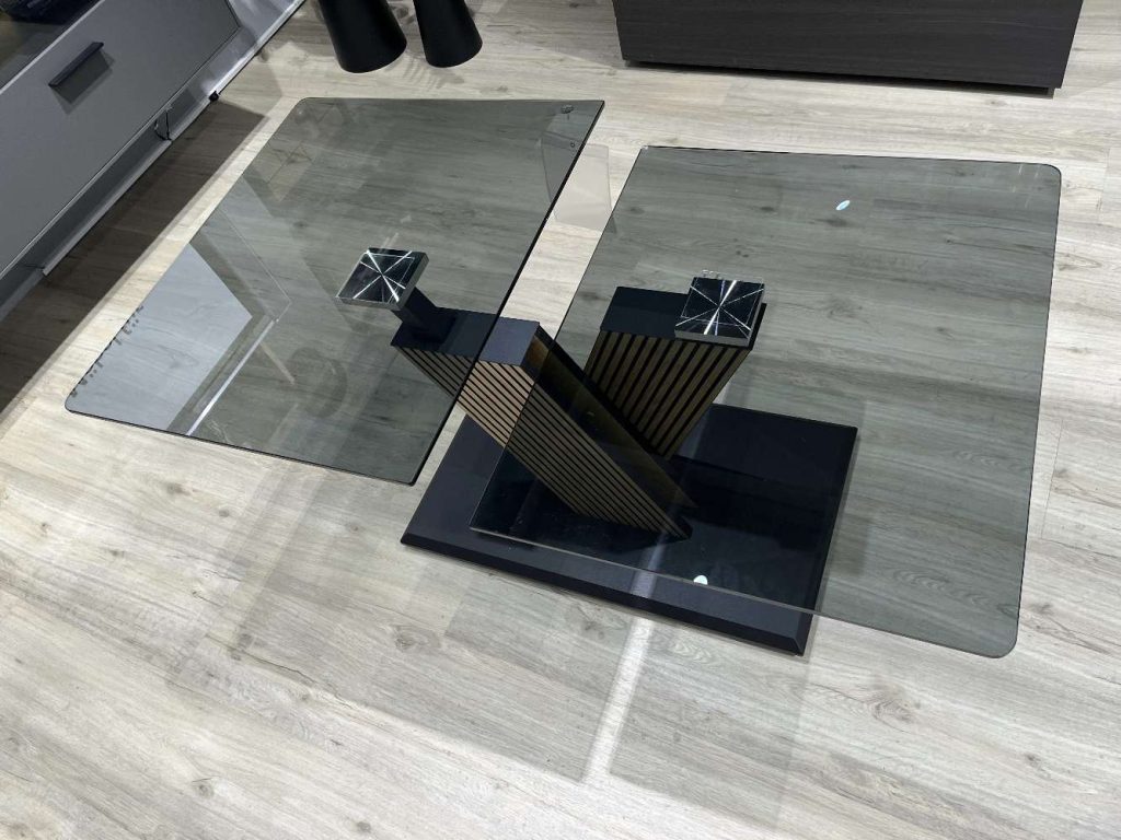 Ausführung2 nebeneinander angeordnete Tischplatten aus ca 8mm starkem ESG Persoglas in grauer Töung
