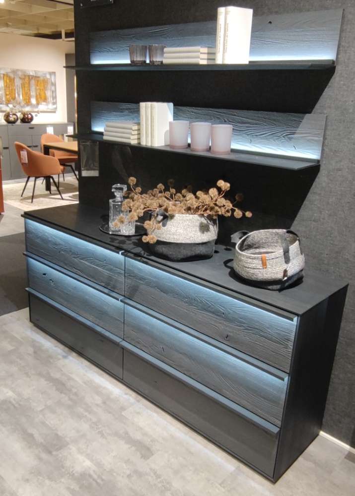 BemerkungDas Lowboard Lenya von HARTMANN vereint zeitlose Eleganz mit moderner Funktionalität und beeindruckt als Ausstellungsstück durch sein edles Design. Hergestellt aus hochwertigem Holz, besteht der Korpus aus robuster Kernesche, während die Fronten aus massivem Buchenholz gefertigt sind. Die sandgestrahlte, anthrazit gebeizte Oberfläche verleiht dem Lowboard eine ansprechende und einzigartige Textur, die jeden Raum optisch aufwertet. Mit großzügigen Maßen von 190x200x44 cm bietet es viel Stauraum und eignet sich ideal für Wohnzimmer, in denen Stil auf Funktion trifft. Lenya passt perfekt zu modernen wie auch klassischen Einrichtungsstilen und überzeugt durch die Qualität, die man von HARTMANN erwartet. Dieses Lowboard ist nicht nur ein Möbelstück, sondern ein Statement für Ästhetik und Handwerkskunst.