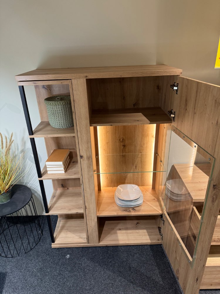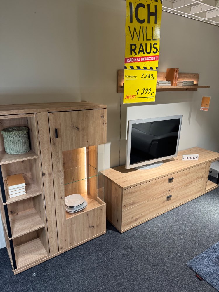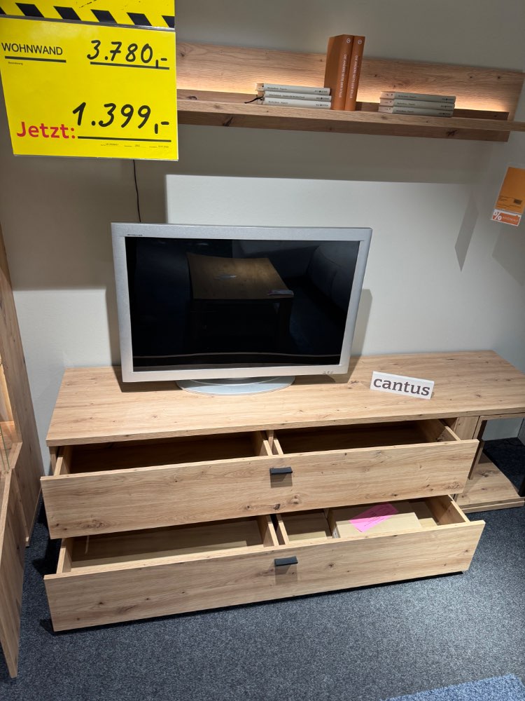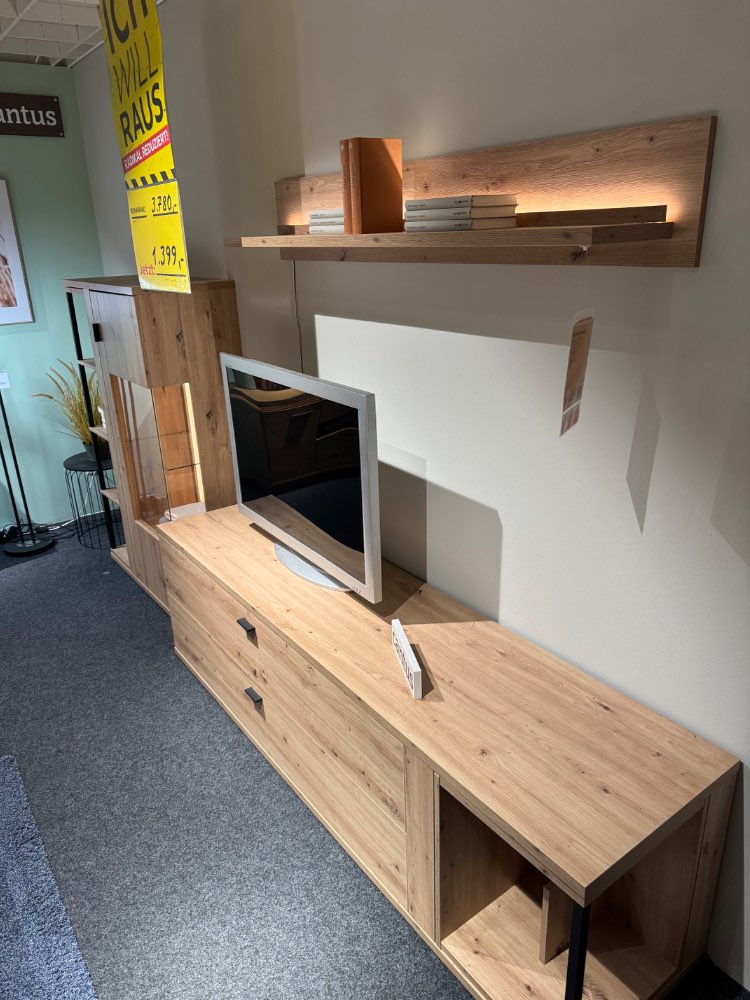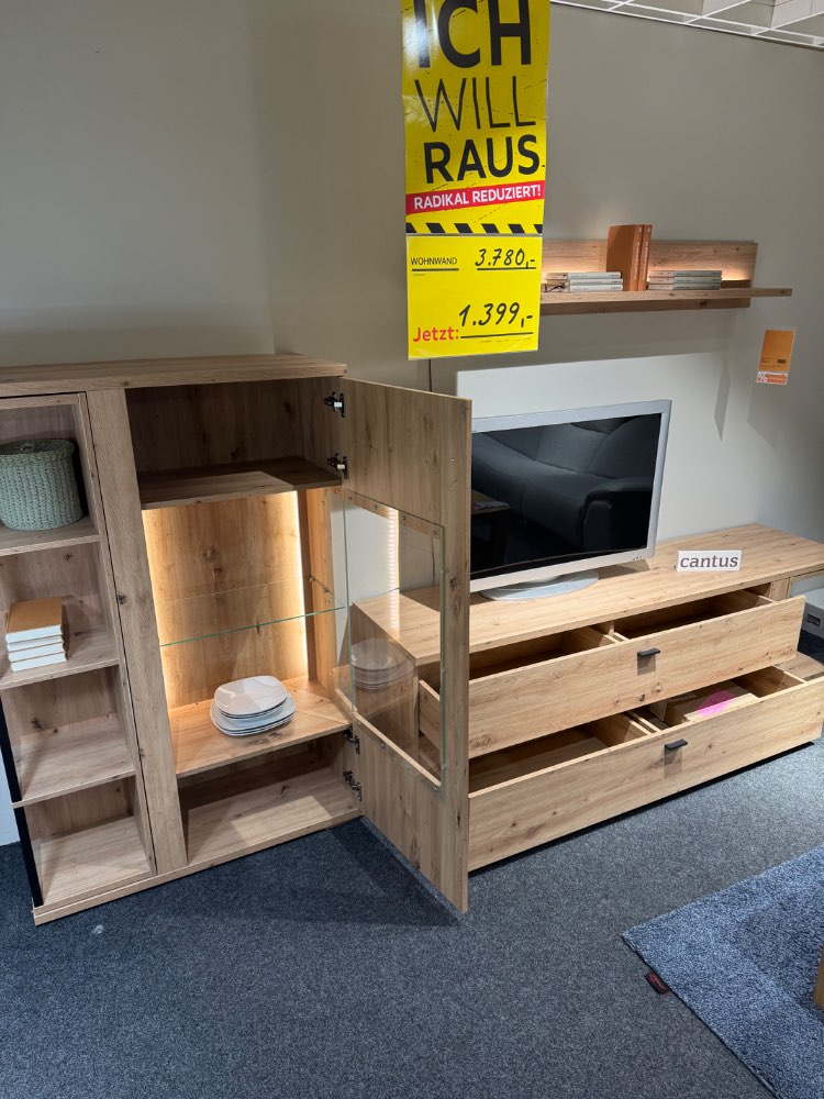 Bemerkung !!!Ausstellungsstück!!! !!!Selbstabbau und Transport!!! !!!Ohne Dekoration!!! Wohnwand bestehend aus: Highboard B/H/T ca. 95,1/140,9/40,2 cm Wandboard B/H/T ca. 150/24/24 cm Lowboard B/H/T ca. 198,1/57,1/48,2 cm Gesamt B/H/T ca. 303,2/170/48,2 cm