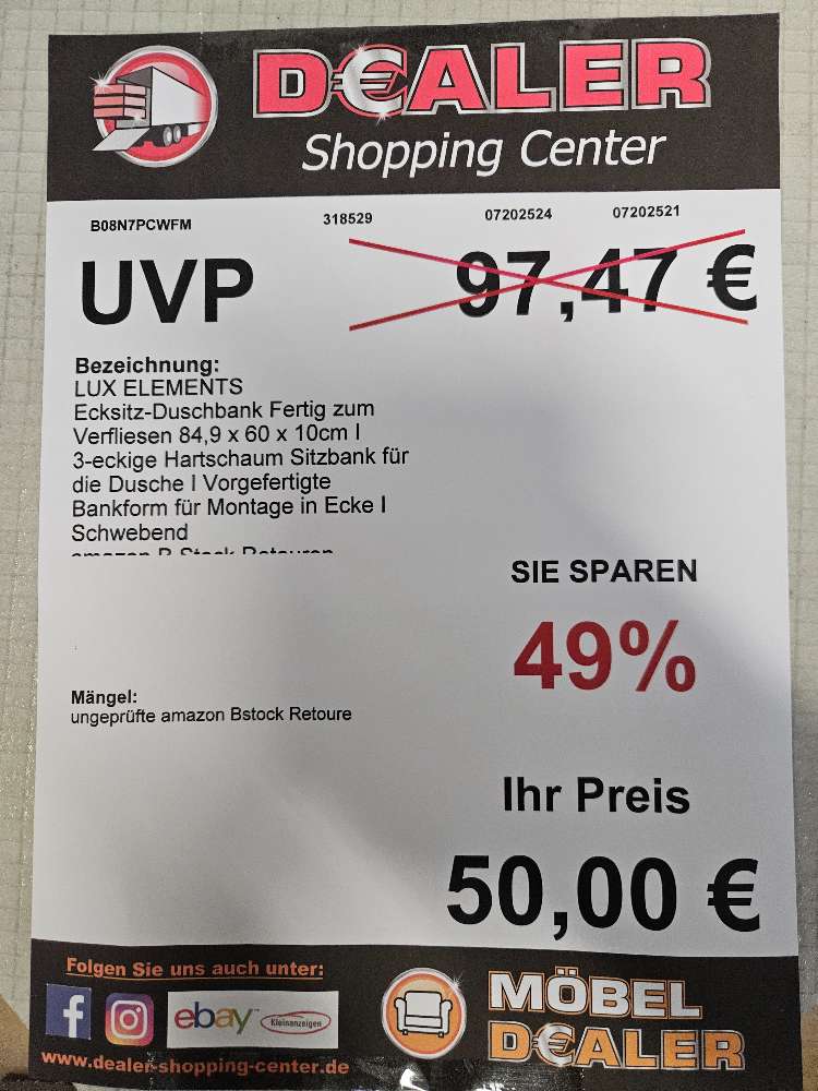 LUX ELEMENTS Ecksitz Duschbank fertig zum Verfliesen statt 97€