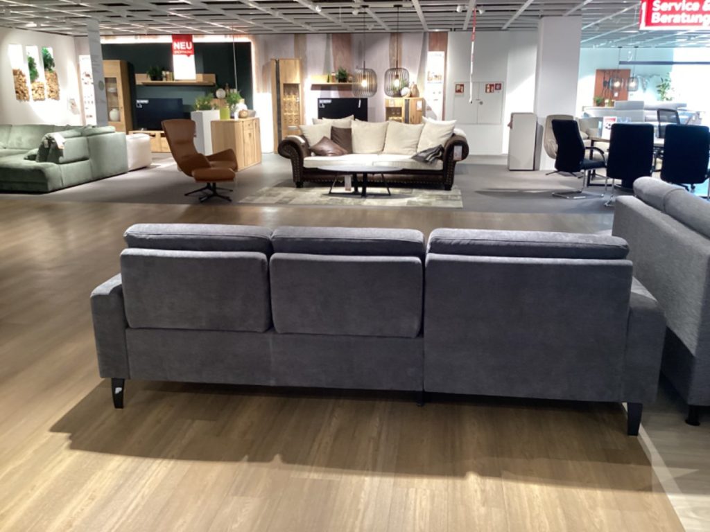 Bemerkung Erleben Sie luxuriösen Komfort und modernes Design mit dem Ecksofa Modell "Mosel" von MEGAPOL. In einem stilvollen Anthrazit-Ton gehalten, fügt sich das Sofa nahtlos in jede zeitgenössische Wohnumgebung ein und bietet gleichzeitig die Funktionalität, die Sie sich wünschen. Der bezug aus hochwertiger Microfaser sorgt für ein angenehmes Sitzgefühl und ist zudem pflegeleicht, was ihn ideal für den täglichen Gebrauch macht. Besonders bemerkenswert ist die Sitztiefenverstellung, die individuellen Komfort auf ein neues Niveau hebt. Die stabilen Metallfüße in elegantem Schwarz vervollständigen das anspruchsvolle Design und bieten zuverlässigen Halt. Mit großzügigen Maßen von 302 x 87 x 177 cm bietet das Sofa ausreichend Platz für die ganze Familie oder gesellige Abende mit Freunden. Als Austellungsware präsentiert es sich nicht nur als Blickfang, sondern überzeugt auch durch seine hochwertige Verarbeitung und den durchdachten Einsatz innovativer Funktionen.