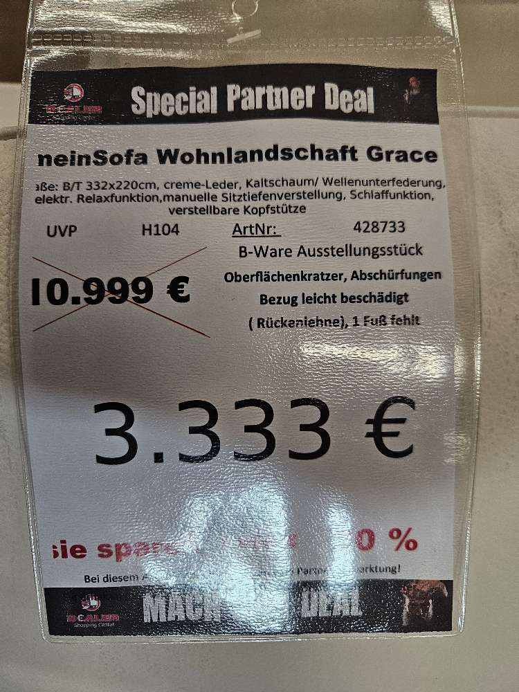meinSofa Wohnlandschaft Couch Grace Leder Creme statt 10999€