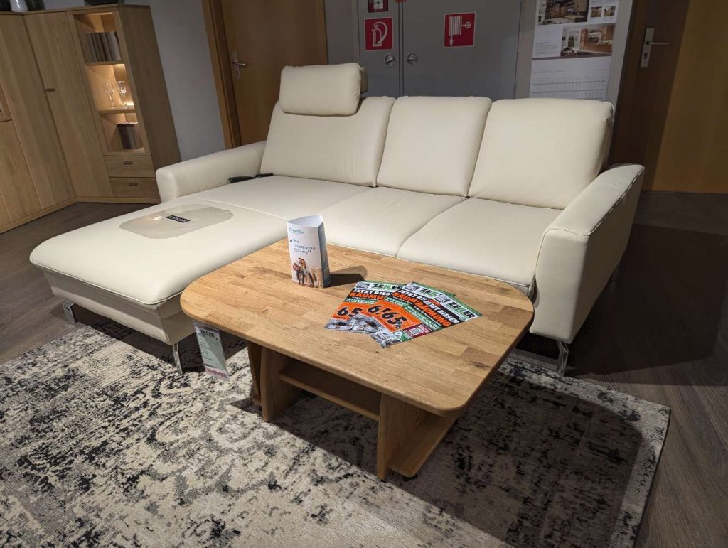 Bemerkung Kleine Longchair-Garnitur mit Motor-Ottomane Longlife-Leder Fb. natur