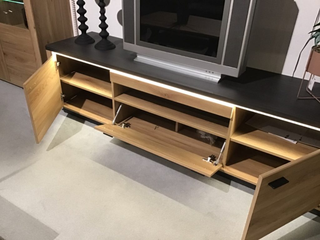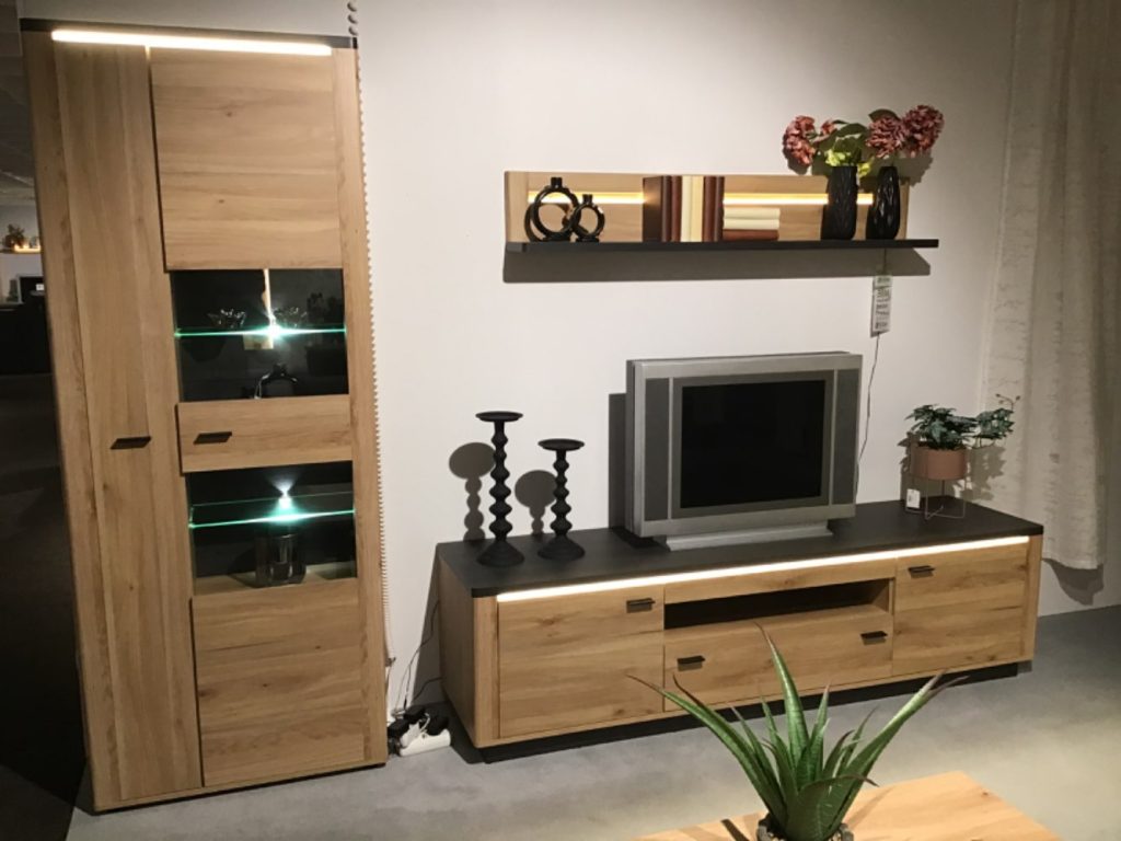 Moderne Wohnwand Maß 310x204x48cm Farbe Eiche/Abs schwarz