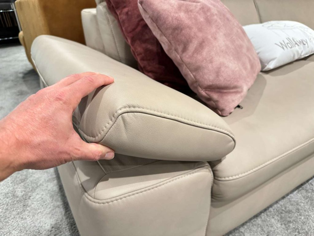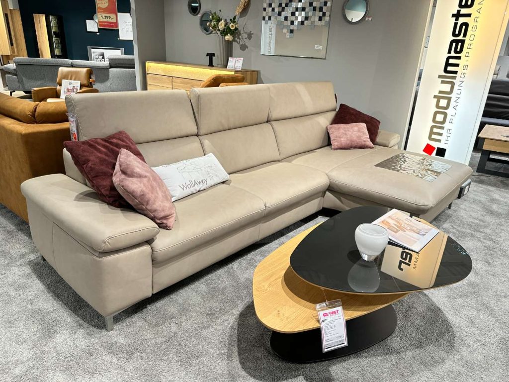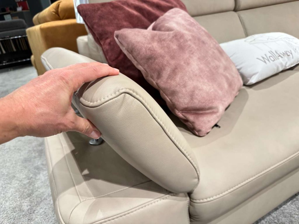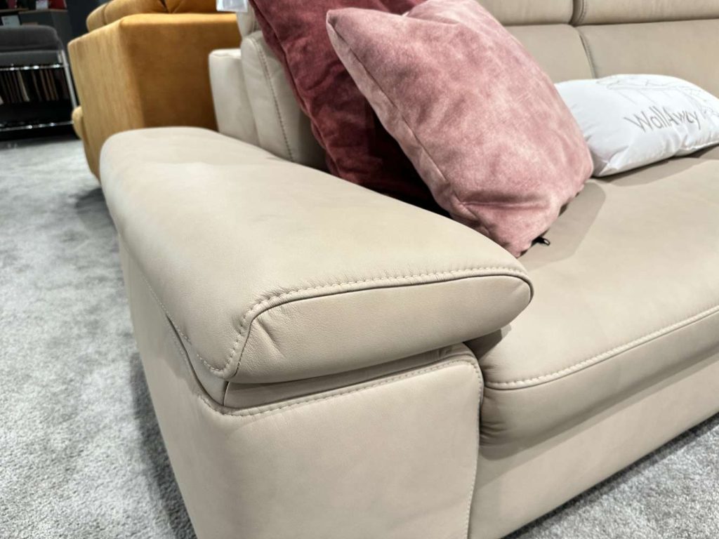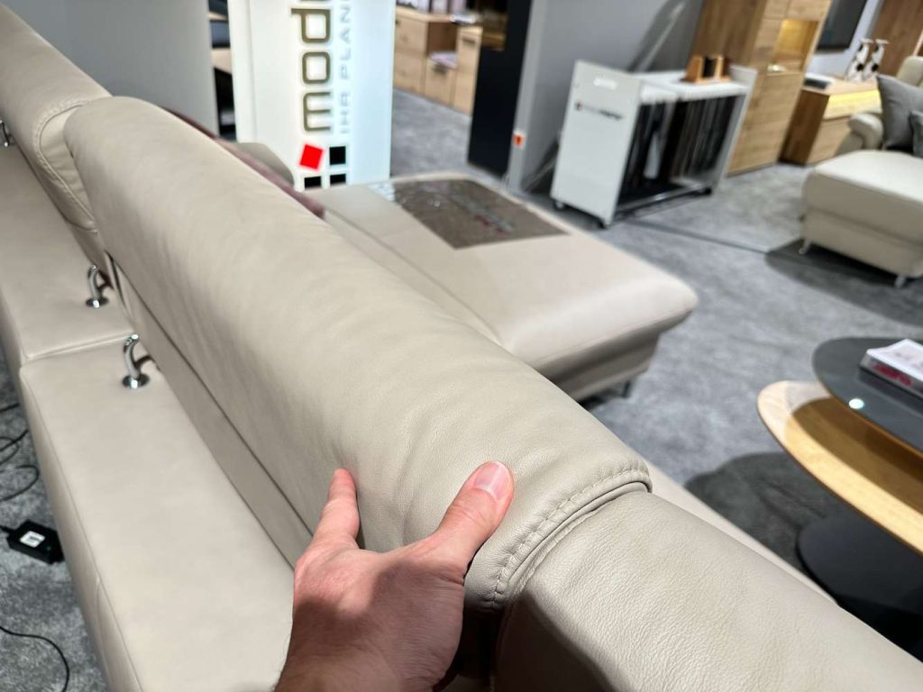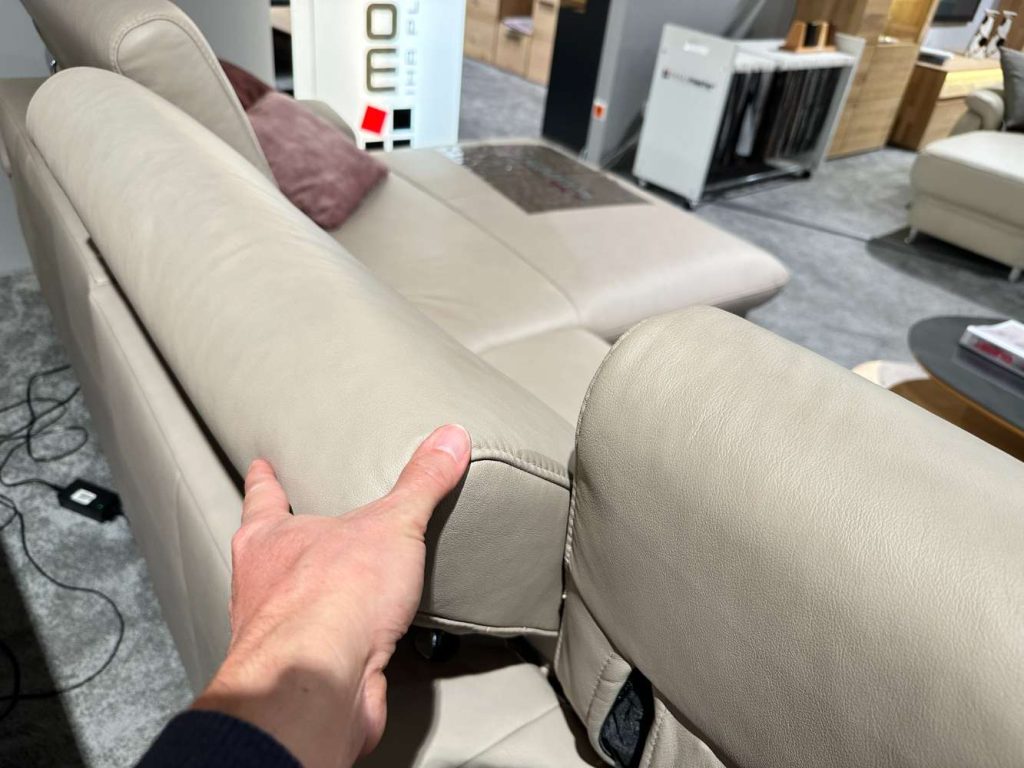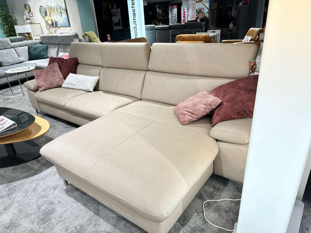 BemerkungSchöne Ledergarnitur in "vivre pearl" lädt zum gemütlichen Beisammensein ein. Besonders praktisch sind die Kopf- und Armteilverstellungen und die motorische Verstellung im Canape.