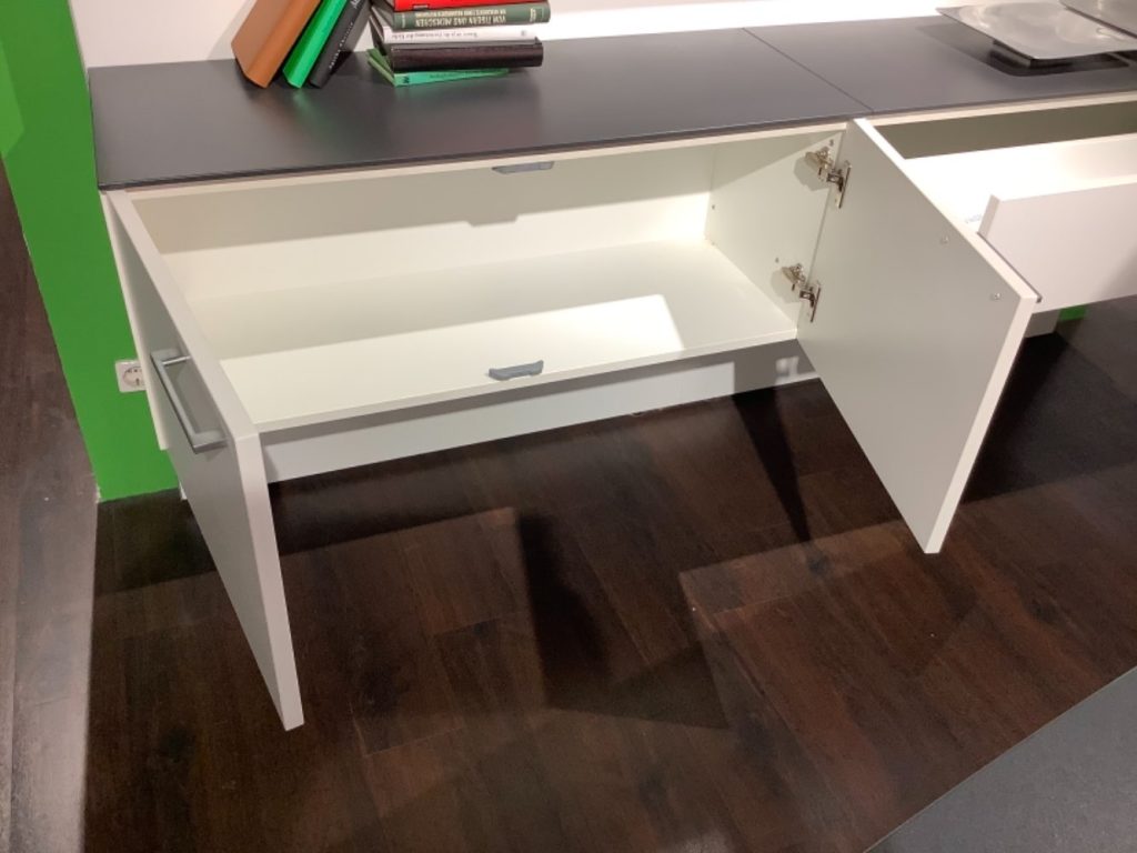 BemerkungDieses eindrucksvolle Möbelstück von KLAIN Büromöbel, das Modell Muliwa, vereint stilvolles Design mit praktischer Funktionalität. Der Korpus und die Fronten erstrahlen in elegantem Weiß, während die anthrazitfarbene Oberplatte einen modernen Kontrast bietet. Mit Maßen von ca. 200 x 191 x 44 cm eignet sich dieses multifunktionale Möbelstück hervorragend für verschiedene Raumkonzepte und schafft dabei ein harmonisches Gesamtbild. Ideal für moderne Büros oder Wohnräume, bietet die Muliwa nicht nur eine großzügige Multiwand, sondern auch Einhängeschränke, die zusätzlichen Stauraum bieten. Besonders hervorzuheben ist die integrierte TV-Halterung, die das Möbelstück zu einem zentralen Punkt im Raum macht und für Unterhaltung sorgt. Dieses Ausstellungsmöbelstück unterstreicht nicht nur Ihre Designvorlieben, sondern erfüllt auch höchste Ansprüche an Funktionalität und Ästhetik, perfekt für den anspruchsvollen Nutzer.