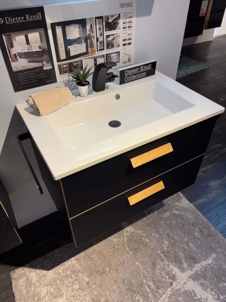 BemerkungDas TREVISO-Komplettbad präsentiert eine elegante Kombination aus modernem Design und funktionalen Details. Der schwarze Korpus, akzentuiert durch weiße Elemente, verleiht dem Raum eine zeitgemäße Optik, während die Eichegriffe für einen natürlichen Kontrast sorgen. Der Badezimmermöbel-Satz besticht durch seinen Waschtisch mit einer Breite von etwa 78 cm, perfekt in jedem mittelgroßen Raum. Ergänzt wird das Ensemble durch einen Hochschrank mit großzügigem Stauraum, der mit einer Höhe von 168 cm und Tiefe von 33 cm beeindruckt.