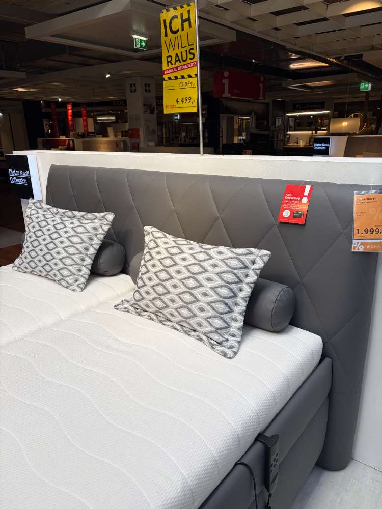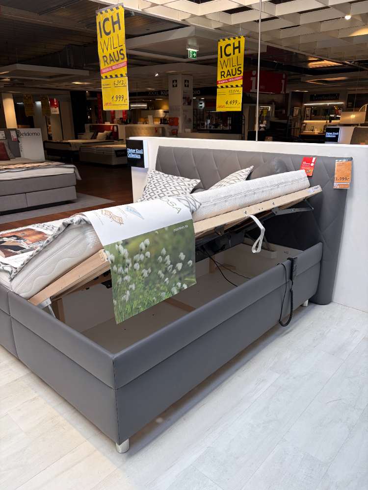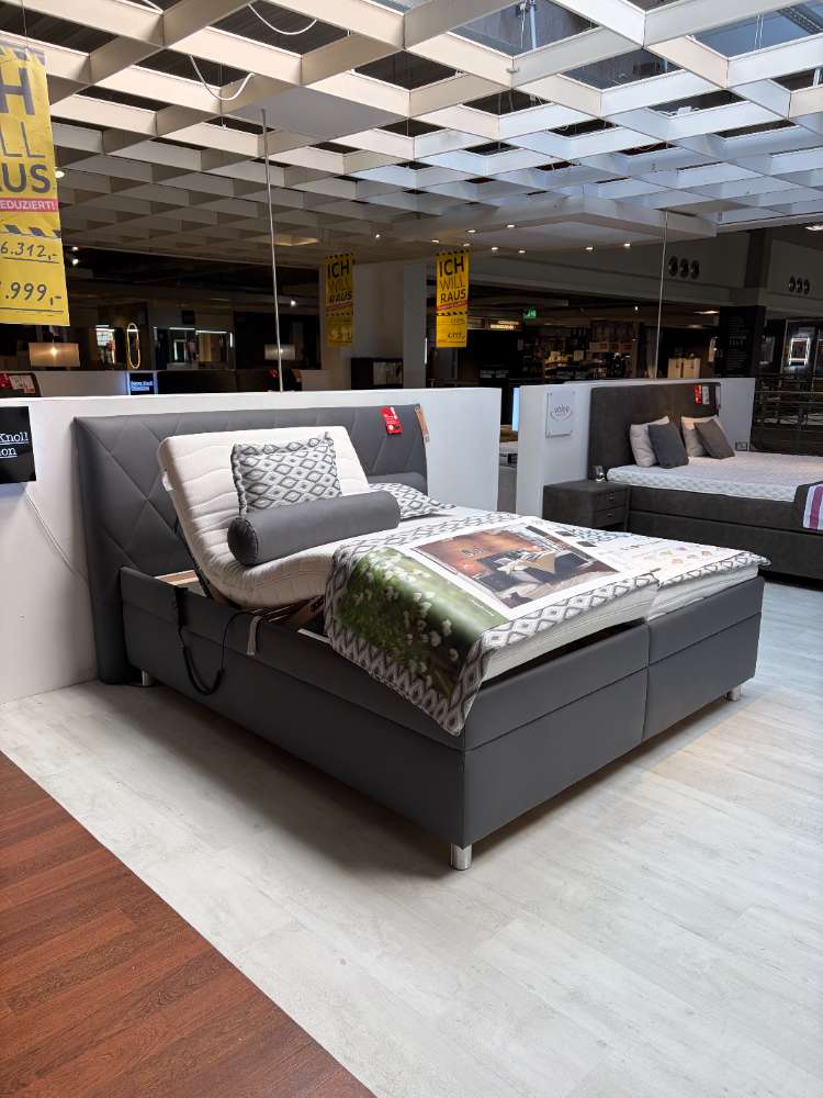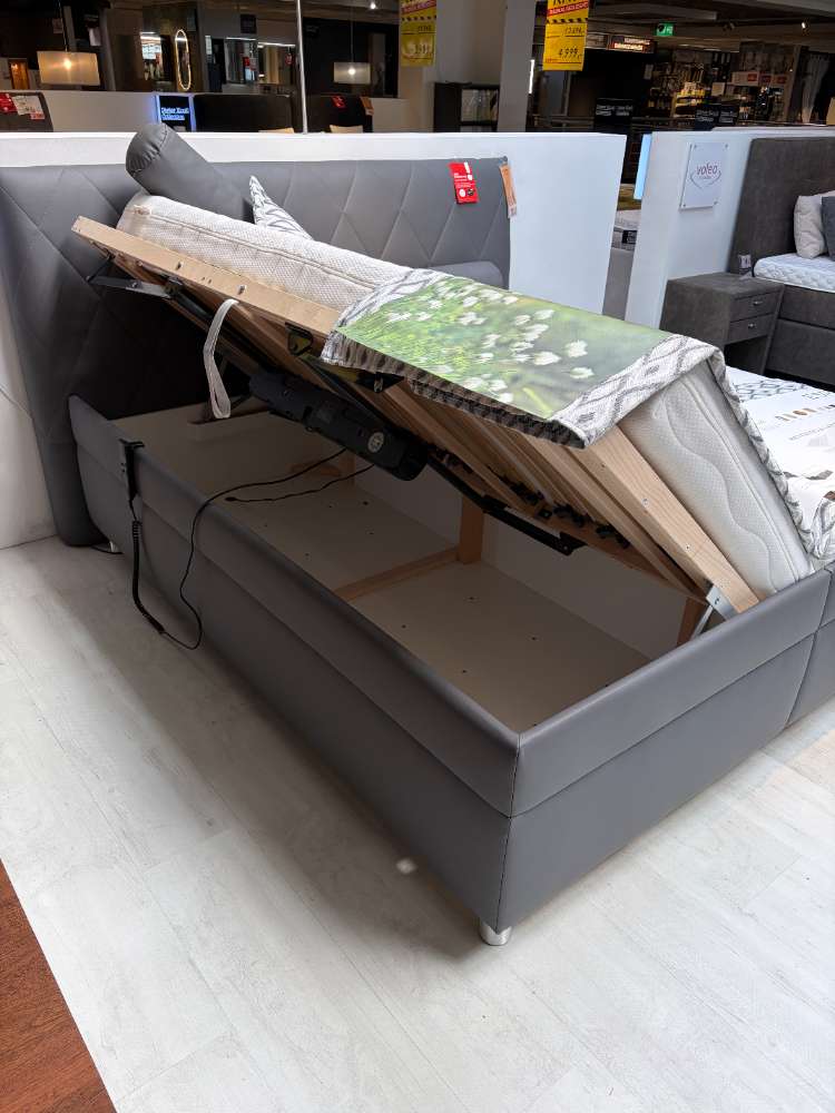 Bemerkung Das Polsterbett PESCARA vereint modernen Stil und funktionale Ausstattung in einem luxuriösen Design. In der eleganten Farbe Anthrazit gehalten, strahlt es zeitlose Raffinesse aus und fügt sich mühelos in jedes Schlafzimmer ein. Die Lederoptik des Stoffes verleiht dem Bett eine hochwertige und ansprechende Haptik, die Komfort und Stil perfekt kombiniert. Mit großzügigen Abmessungen von etwa 228 cm Länge, 212 cm Breite und 113 cm Höhe bietet das PESCARA-Bett ausreichend Platz für erholsame Nächte. Der Liegeflächenbereich von 180 x 200 cm wird von einem motorischen Lattenrost unterstützt, das eine individuelle Anpassung und maximalen Komfort ermöglicht. Praktische Extras wie ein geräumiger Bettkasten sorgen für zusätzlichen Stauraum, während die im Ensemble enthaltenen Matratzen mit Härtegrad 2 und 3 auf unterschiedliche Schlafbedürfnisse eingehen. Vier stilvolle Kissen und eine luxuriöse Decke runden das Angebot ab und tragen zur gemütlichen Atmosphäre bei. Ob als Ausstellungsstück oder neues Herzstück Ihres Schlafzimmers, PESCARA überzeugt durch Design und Funktionalität.