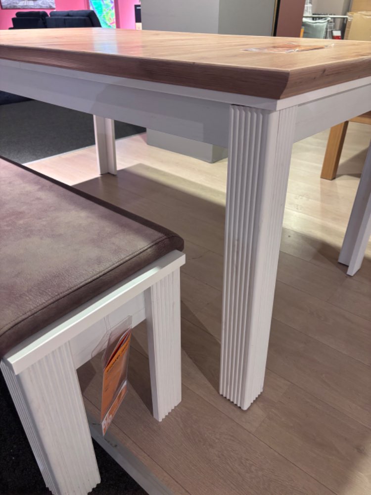 Maße Esstisch 1.60-2.20cm Länge - 0.90cm Breite - 0.77cm Höhe — Sitzbank 1.26cm Länge - 0.35cm Breite - 0.45cm Höhe
