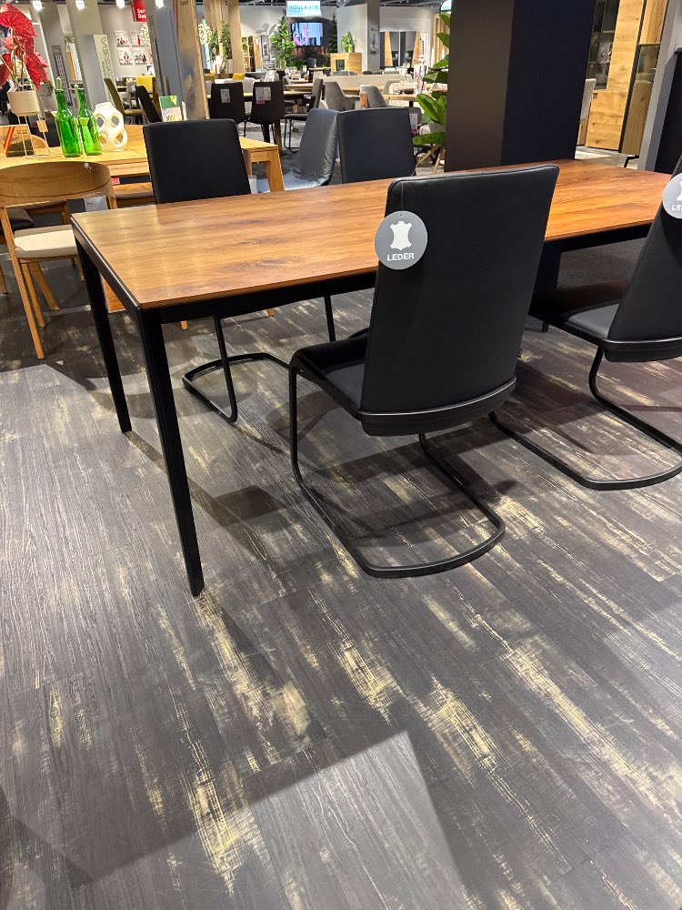 Inklusive Auszug, Stühle Leder schwarz