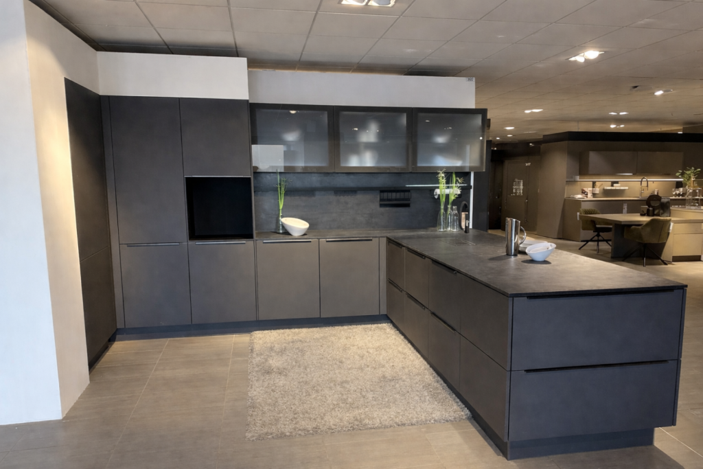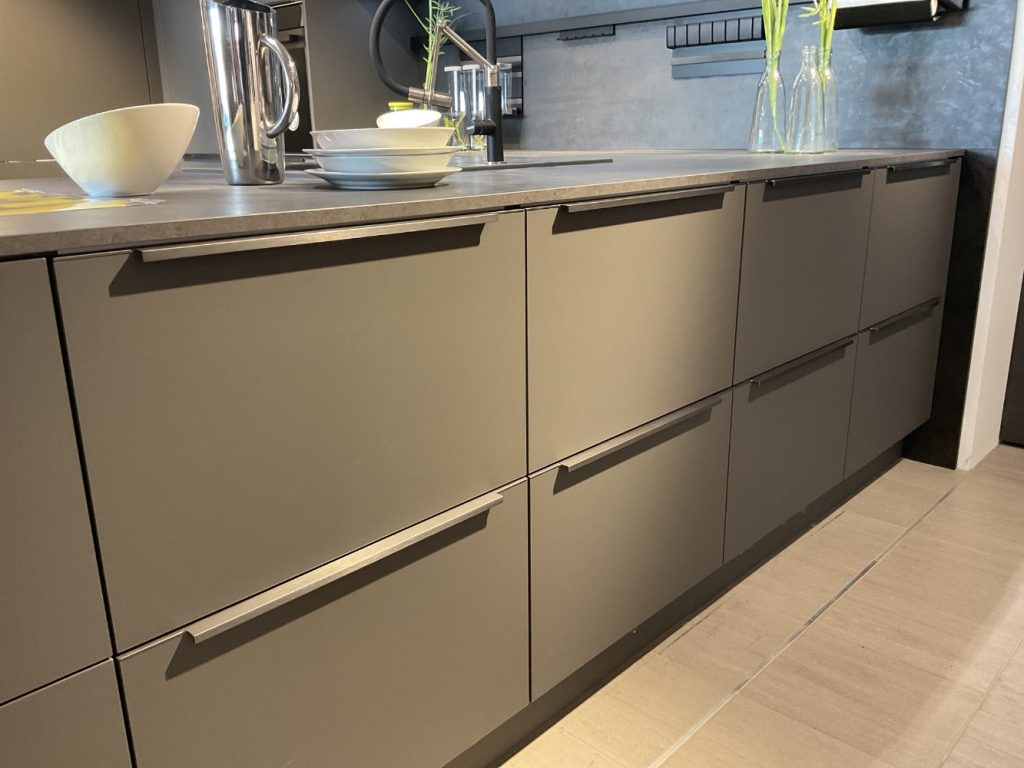 BemerkungErleben Sie die exquisite Eleganz der Häcker Systemaic Küche, die sich in einem zeitlosen Design präsentiert. Die samtig-matte Oberfläche der Fronten in perfekt softem Anthrazit verleiht der Küche eine moderne und dennoch einladende Atmosphäre. Als Inselküche konzipiert, bietet sie nicht nur optimalen Raum zum Kochen, sondern wird auch zum stilvollen Mittelpunkt jedes Zuhauses.