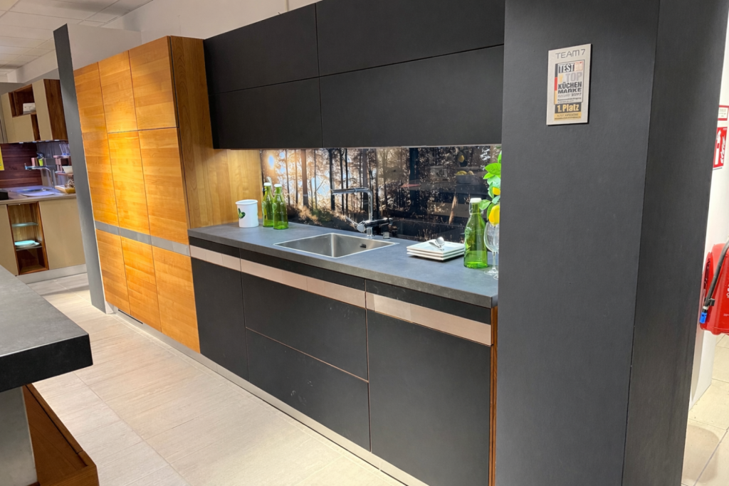 BemerkungDie Ausstellungsküche Team 7 vereint modernes Design mit erstklassiger Handwerkskunst und ist ein exquisites Beispiel für die Qualität von TEAM 7, bekannt für ihre nachhaltigen Möbelstücke. Diese Ausstellungsküche überzeugt mit einer harmonischen Kombination aus natürlichen Materialien und funktionalen Elementen, die jede Küche in einen stilvollen und zugleich praktischen Arbeitsplatz verwandeln. Die sorgfältig ausgewählten Hölzer strahlen eine warme Eleganz aus, die den Raum einladend und zeitlos wirken lässt. Durch innovative Stauraumlösungen und durchdachte Details wird Effizienz großgeschrieben, ohne dabei die ästhetische Anziehungskraft zu beeinträchtigen. Ideal für alle, die eine Küche suchen, die sowohl durch ihr einzigartiges Design als auch durch nachhaltige Herstellung beeindruckt. Die Bilder wurden KI generiert und zeigen keine Geräte, deswegen können kleine Ausschnitte der Originalküche abweichen. Das Angebot enthält keine Geräte.