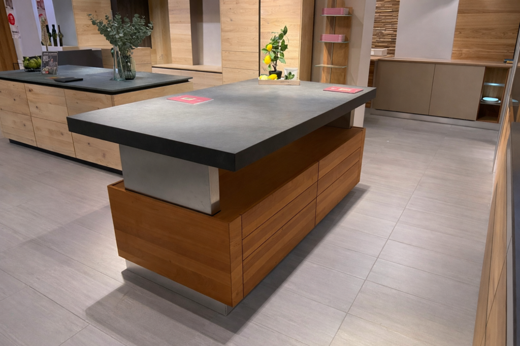 Farb-BeschreibungArbeitsplatte Keramik Wolke anthrazit von AKP / Holz Kirschbaum massiv