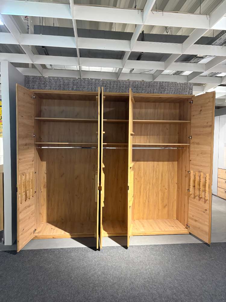 BemerkungEntdecken Sie den Drehtürenschrank EPULO, der in atemberaubender „Wildeiche mit Anthrazit“ Eleganz und Funktionalität in einem modernen Design vereint. Gefertigt aus teilmassivem Wildeichenholz strahlt er natürliche Schönheit und Robustheit aus, während die Glasfronten in Anthrazit einen stilvollen Kontrast schaffen und dem Raum ein zeitgemäßes Flair verleihen. Mit großzügigen Maßen von 256,8 cm in der Breite, 225 cm in der Höhe und 58,5 cm in der Tiefe bietet der Schrank ausreichend Platz für all Ihre Kleidung und Accessoires.