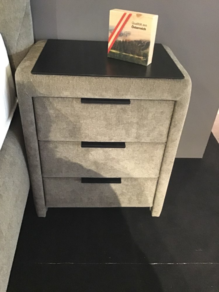 Bemerkung Boxspringbett (Liegefläche 180 x 200 cm) mit passenden Nachtschränken (B/H/T: ca. 57 x 61 x 42 cm) (drei Schubladen mit Softclose und Glasauflage)
