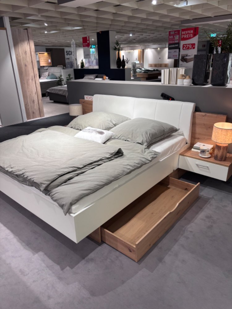 Bemerkung Das Schlafzimmer Masare von SCHLAFKONTOR GMBH & CO KG ist ein wahres Highlight für jedes Zuhause. Als Ausstellungsstück bietet es die perfekte Kombination aus moderner Eleganz und zeitloser Funktionalität. Die hochwertigen Materialien und die makellose Verarbeitung machen dieses Schlafzimmer-Set zu einer ausgezeichneten Wahl für alle, die hohen Wert auf Qualität und Stil legen. Die sorgfältige Auswahl von Stoffen und Farben spiegelt die exquisite Handwerkskunst wider, die das Schlafzimmer Masare zu einem besonderen Ort des Rückzugs macht. Jede Komponente wurde mit Blick auf Komfort und Ästhetik entworfen, um Ihrem Raum eine beruhigende und zugleich luxuriöse Atmosphäre zu verleihen. Ob Sie Ihr Schlafzimmer neu einrichten oder einfach nur einen stilvollen Akzent setzen möchten, das Schlafzimmer Masare ist die ideale Lösung für ein erholsames und stilvolles Ambiente.
