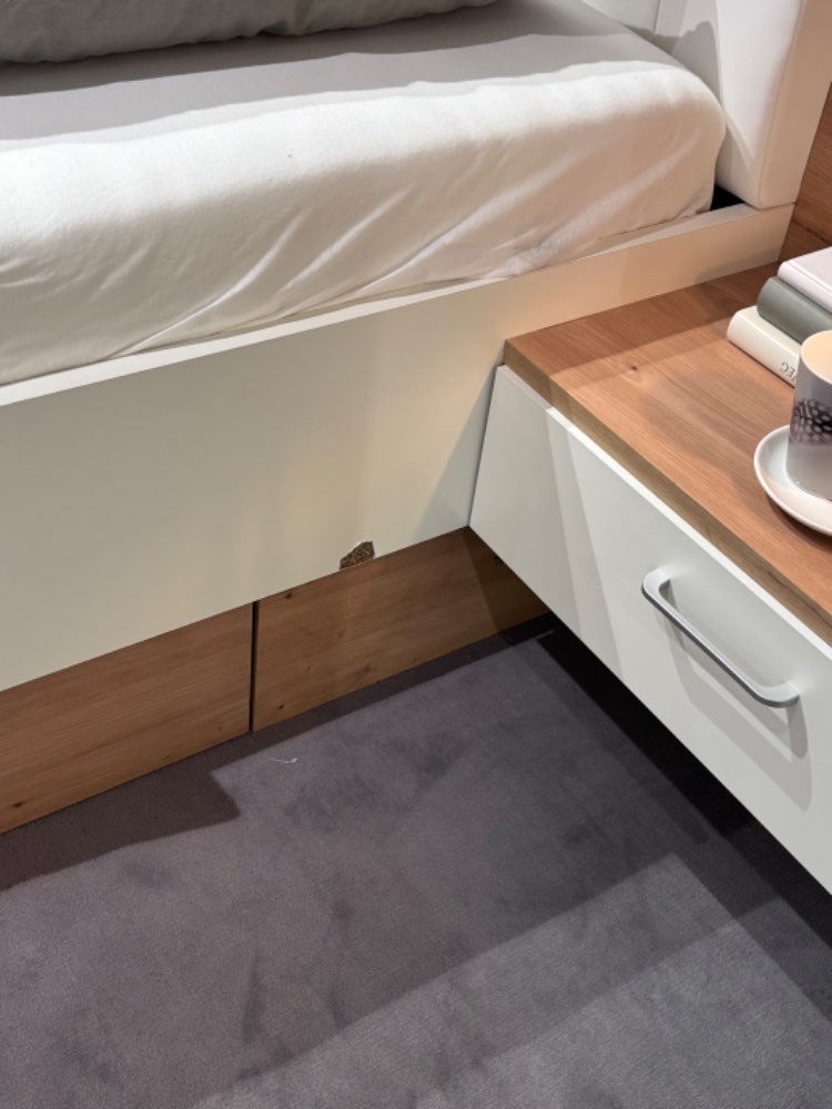 Ohne Lattenrost und Matratze Aufgeplatzte Stelle an der Bettanlage