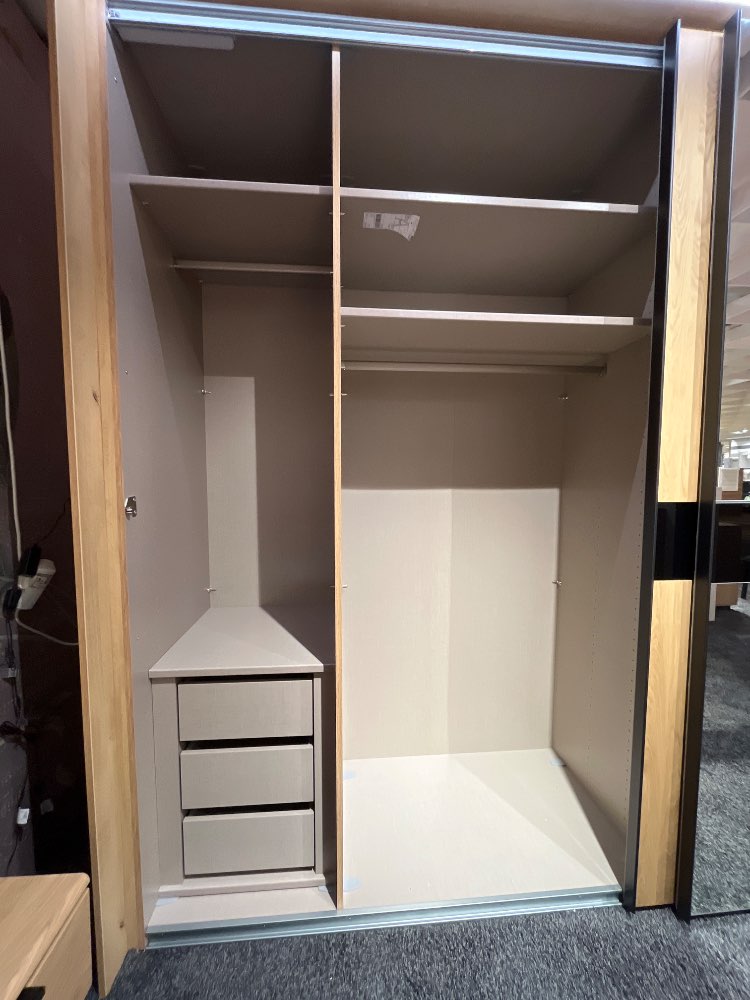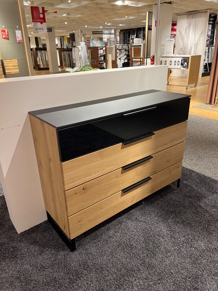 Wildeiche Massiv Front, Spiegel, Schwarzglas, Details Schwarz matt