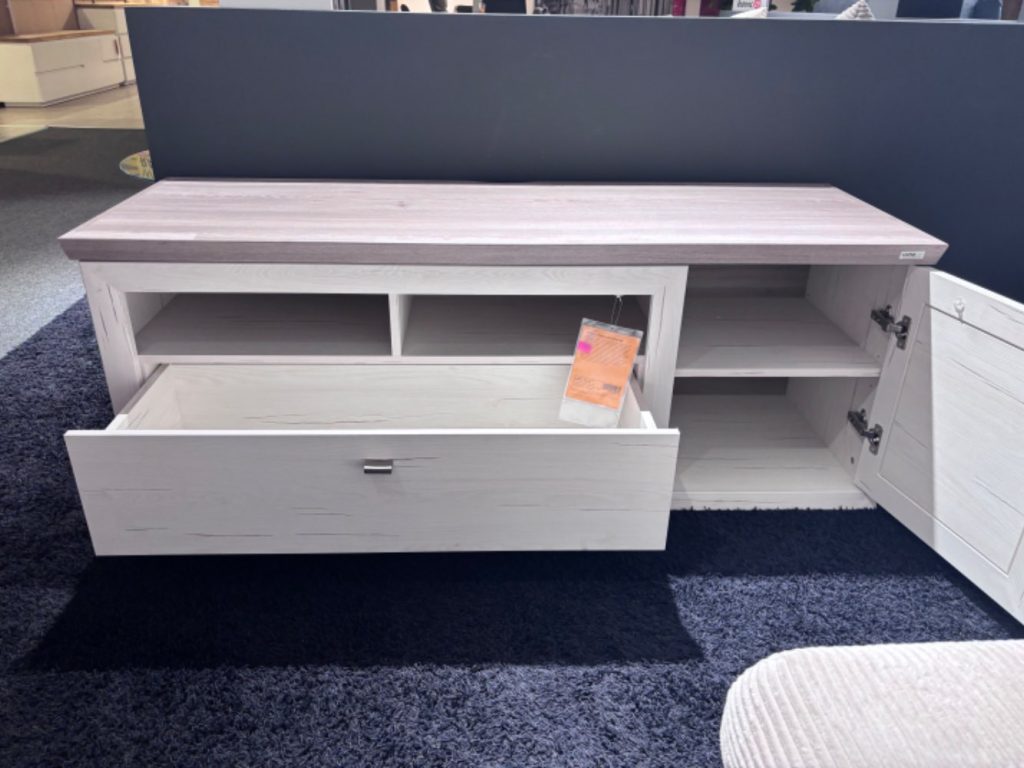 BemerkungDas TV-Element Camron von HOM' IN vereint modernes Design mit praktischer Funktionalität und ist die perfekte Ergänzung für Ihr Wohnzimmer. Als Ausstellungsware bietet es eine großartige Gelegenheit, hochwertige Möbel zu einem attraktiven Preis zu erwerben. Dieses Möbelstück besticht durch seine klare Linienführung und zeitlose Eleganz, die sich nahtlos in Ihre Wohnumgebung einfügt. Der geräumige Stauraum sorgt dafür, dass all Ihre technischen Geräte und Zubehörteile ordentlich verstaut werden können. Ob Flachbildfernseher oder Audioanlagen, das TV-Element Camron bietet genügend Platz und Stabilität für all Ihre Unterhaltungsbedürfnisse. Die sorgfältige Verarbeitung und das ansprechende Design machen es zu einem Highlight in jedem Raum. Verleihen Sie Ihrem Zuhause ein stilvolles Update mit dem TV-Element Camron von HOM' IN.