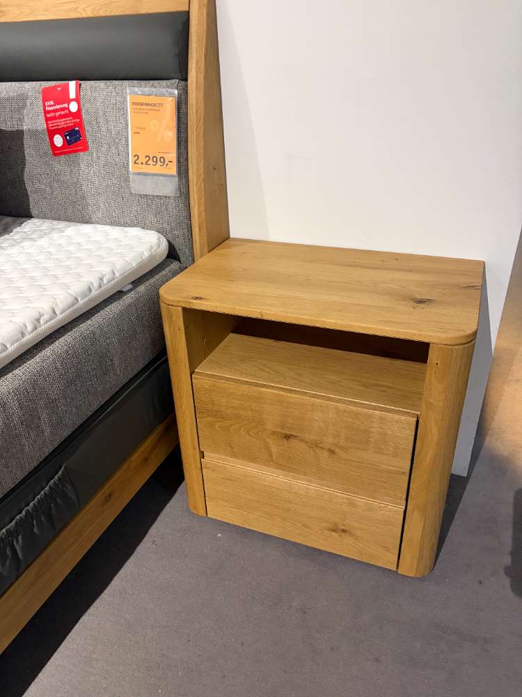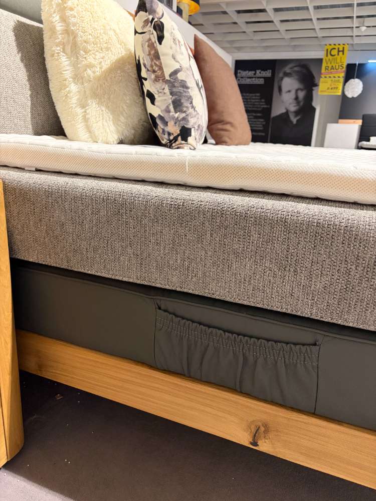 Besonders praktisch ist die Ausstattung mit zwei stilvollen Nachttischen, die jeweils über zwei Schubladen und ein Ablagefach verfügen. Diese bieten reichlich Stauraum und ergänzen das Gesamtbild des Bettes harmonisch. Die Farben Eiche, Dunkelgrau und Taupe verleihen dem Bett eine warme und einladende Ausstrahlung, die jedes Schlafzimmer in eine Wohlfühloase verwandeln. Ideal als Ausstellungsstück, ist das Modell DONNA nicht nur ein funktionales Möbelstück, sondern auch ein Highlight in jeder Einrichtung.