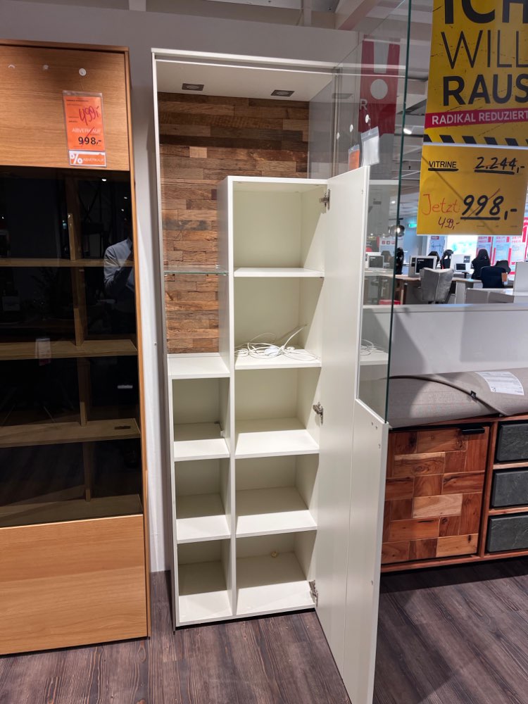 ⭐ Vitrine SENTINO, XXXLutz Karlsruhe, Artikel-Nr.: 15100184/02 ✅ Angebotspreis: 499,- € ⭐ Spezifikationen: ----------------------------------- Artikelart: Ausstellungsware ⭐ Grundriss und Abmessungen: ------------------------------------- ✏️ Masse: B62xH207xT43 cm ⭐ Farbe und Materialien: ------------------------------------- Material: Holz lackiert Farbe: Lack weiß matt ⭐ Zahlungs- und Lieferbedingungen: ------------------------------------------- Zahlungsbedingungen: EC-Karte bei Abholung Kreditkarte: Mastercard, Visa bei Abholung Vorkasse per Überweisungen Finanzierung Lieferbedingungen: Nur Selbstabholung möglich